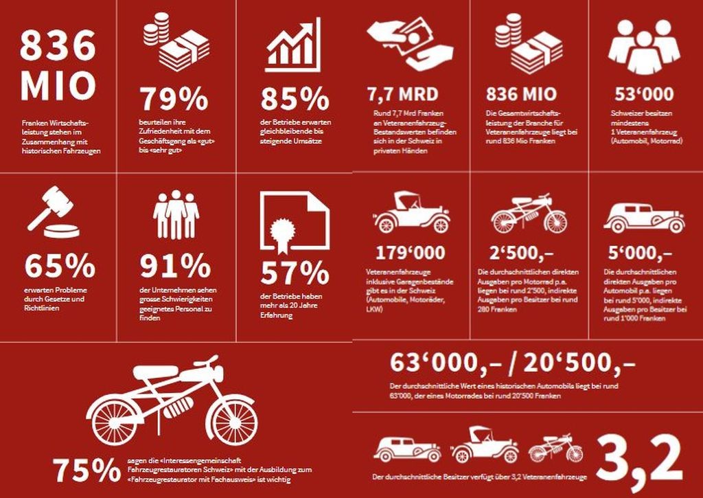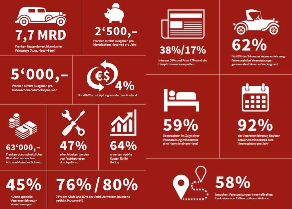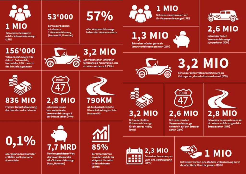 Eden izmed najbolj pomembnih vzrokov za tako veliko švicarsko ljubezen do 'stare pločevine' razkriva že informacija o njihovem trenutnem BDP-ju, ki znaša skoraj 84.000 ameriških dolarjev (Slovenija: približno 26.170 ameriških dolarjev …), temu primeren je tudi interes švicarskega prebivalstva za sceno starodobnikov, ker je 44 odstotkov izmed vseh, ki so z odgovori sodelovali v študiji združenja SHVF, povedalo, da so srečni vsakič, ko na cesti opazijo dobro ohranjen starodobni avtomobil, ker se večina Švicarjev in Švicark (3,2 milijona, odnosno pol prebivalcev Švice) zaveda pomembnosti ohranjanja tehnične kulture, ki nenazadnje priča tudi o dejanski razvitosti njihove države. 15 odstotkov švicarskega prebivalstva je celo prepričanih, da bi morala država subvencionirati nakupe starodobnikov …