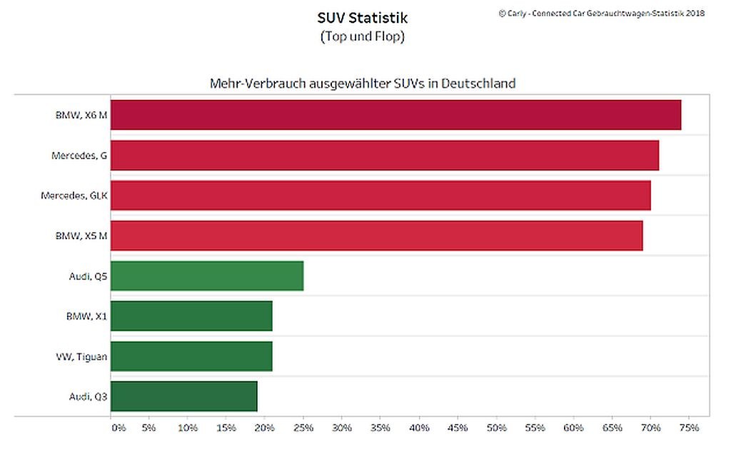 V nemškem podjetju Carly, kjer kupcem ponujajo njihovo aplikacijo Carly Connected Car, so si ob pridobivanju rezultatov te študije pomagali z njihovo obširno bazo podatkov o približno 1,2 milijona avtomobilov (od tega je v raziskavo vključenih tudi približno 150.000 britanskih avtomobilov), ki temelji na podatkih, pridobljenih ob priključitvi aplikacije na avtomobilske OBD vmesnike, kjer lahko vsak uporabnik razbere tudi dejansko in ne samo s strani marketinga odobreno 'realno porabo', ki je po navadi prikazana ob pomoči potovalnih računalnikov, ki jim nekateri slepo verjamejo. Žal je resnica drugačna. Pred približno desetimi leti so se pri enem izmed znanih nemških avtomobilističnih medijev podali na italijansko testno stezo (oval) Nardo, kjer so do onemoglosti gnali 2,5-tonsko 'SUV lokomotivo' znanega nemškega proizvajalca avtomobilov. Ob tem se je izkazalo, da si je ta 'lifestyle-parnik' ob doseganju največje hitrosti (275 km/h) z lahkoto postregel s približno 66. litri bencinskega pogonskega goriva na vsakih sto prevoženih kilometrov. Vgrajeni potovalni računalnik je ob tem pokazal največ 33 litrsko povprečno porabo …