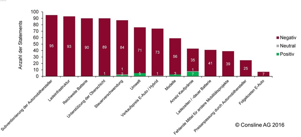 Iz Nemčije, kjer so v teh dneh kupcem novih električno gnanih avtomobilov že na voljo državne subvencije (4.000 evrov), prihajajo rezultati zanimive raziskave, ker so zaposleni pri svetovalnem podjetju Consline AG ob pomoči spletnih komentarjev analizirali trenutno mnenje Nemcev in Nemk glede državnih subvencij za nakup novega električnega avtomobila.