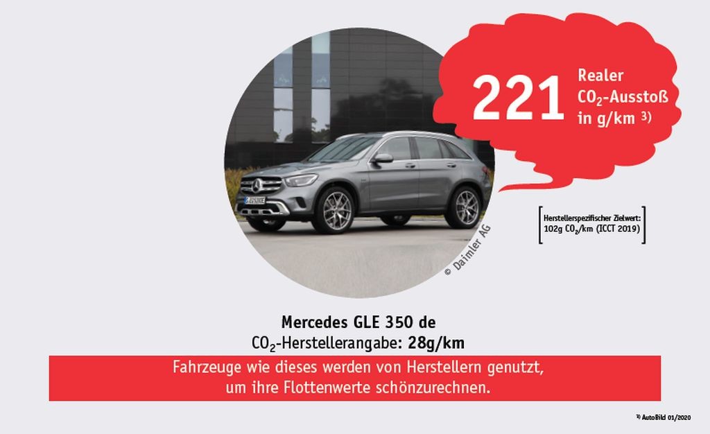 Barbara Metz iz organizacije Deutsche Umwelthilfe pravi, da so primerjalni testi v realnih voznih okoliščinah, ki so jih opravili njihovi strokovnjaki, strokovnjaki kluba ADAC ter nekateri novinarji že večkrat pokazali, da nekateri takšni SUV 'ekološki' avtomobili v resnici porabijo občutno več pogonskega fosilnega goriva in posledično ob vožnji ustvarijo še več CO2 emisij kot pa običajno, fosilno gnano SUV sorodstvo. Po njenem mnenju gre v teh primerih za 'Mogelpackungen' (embalaža z varljivo vsebino …), ki z deklariranimi nizkimi izpusti CO2 in lažnimi okoljevarstvenimi vrednotami zavaja kupce in državne uradnike, ker so takšna vozila samo sredstvo za prelisičenje ekoloških predpisov in plačilo nižjih kazni zaradi ostalih serijskih modelov s preveliko količino ustvarjenih CO2 in ostalih škodljivih emisij.