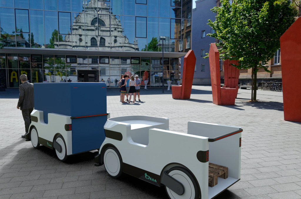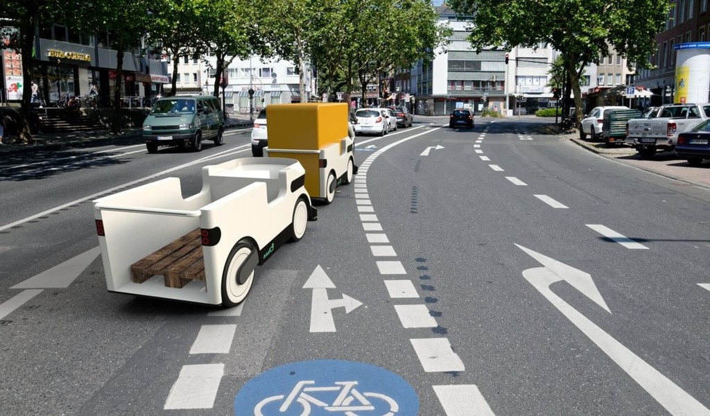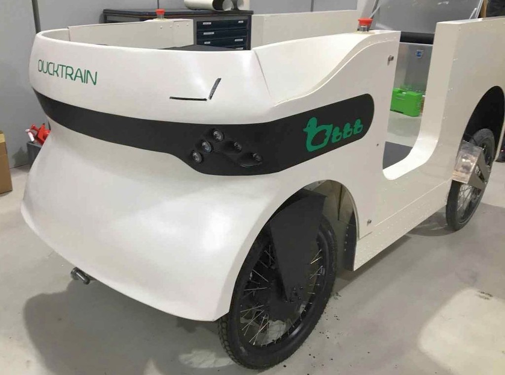Istočasno se podjetja, ki se ukvarjajo z dostavo, srečujejo s čedalje večjimi omejitvami glede še dopustne količine tovornega prometa v mestih, ker ima ekologija tudi na tem področju čedalje večji pomen. Teh problemov se zavedajo tudi zaposleni v enem izmed nemških 'start-up' podjetij, ki je stacionirano na področju mesta Aachen. Zato so Nemci pred časom dobili idejo o 'račjem vlakcu', ki ga lahko sestavlja največ pet majhnih, striktno električno gnanih vozil, zasnovanih 'okoli' ene euro palete. Na ta način lahko en voznik dostavne službe prepelje precej več tovora, in to na območjih, kjer večja in tudi manjša dostavna vozila nimajo vstopa, ali pa jih pri vstopu v takšno območje omejujejo preveliki karoserijski gabariti (dolžina, širina, višina in masa ...) in hrup, ki ga povzročajo ob delovanju.