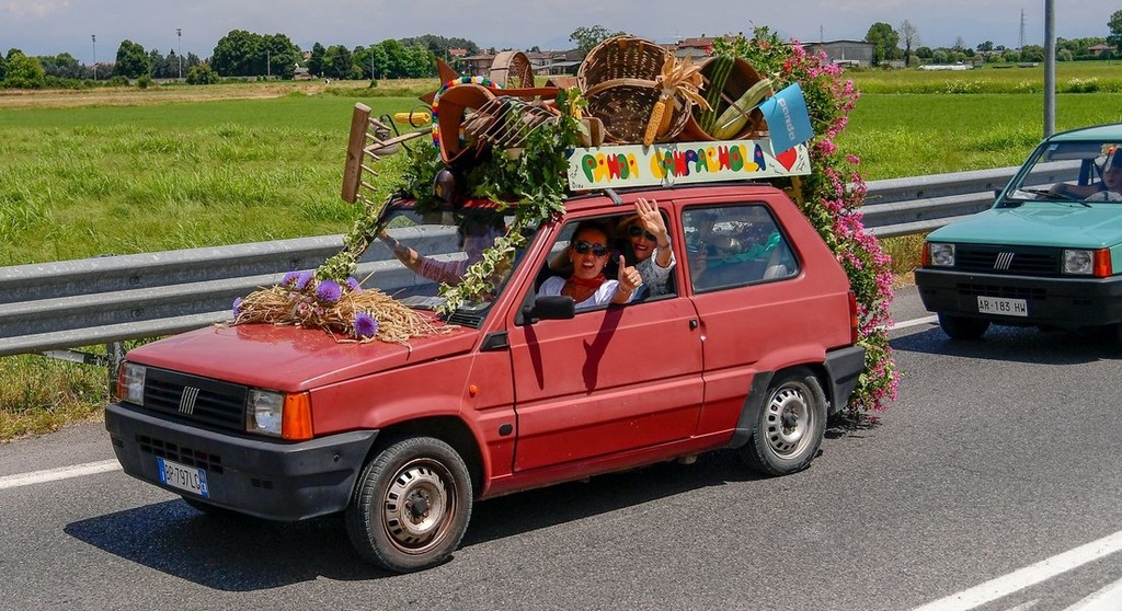 Ideja o mednarodnem zborovanju 'italijanskih pand' v mestecu Pandino se je prvič rodila lani, ko se je nam neznana mlada lastnica Fiatove pande odločila, da bo ob pomoči družbenih omrežij izpeljala prvo srečanje ljubiteljev modela panda v italijanskem mestu, ki mu domačini pravijo tudi Pandi, ime Pandino pa lahko povežemo tudi z enako špansko besedo, ki v tem primeru označuje 'moške predstavnike' teh prikupnih kitajskih rastlinojedov. Lani se je na tem dogodku zbralo približno 200 štirikolesnih pand, podelili pa so tudi enajst nagrad iz različnih kategorij (najbolj ekstravagantna panda, najbolje opremljena panda, najstarejša prisotna panda, panda, ki se je na srečanje pripeljala od najbolj daleč …). Ob tej priložnosti so organizirali tudi 'parado ponosa', ki so jo razkazovali na približno 27 kilometrski trasi okoli mesteca Pandino, kjer živi približno 10.000 prebivalcev.