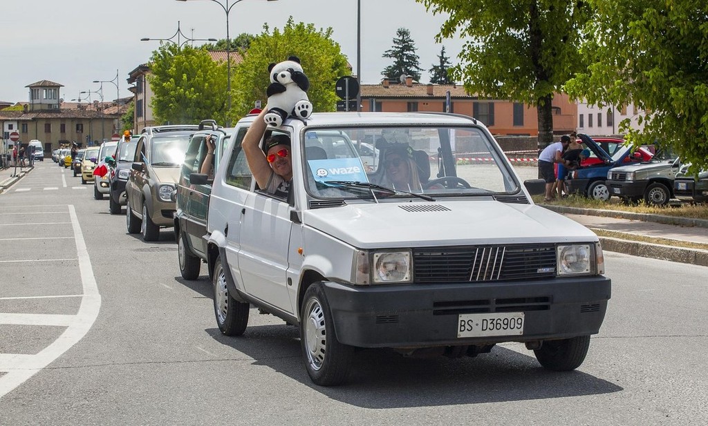 Pri naših zahodnih sosedih (mestece Pandino v regiji Lombardija) se je minulo nedeljo odvijalo že drugo mednarodno srečanje ljubiteljev prikupne Fiatove pande, ki je postreglo z novim rekordom, ker se je letos na enem mestu zbralo 365 pand iz vseh modelnih generacij. Ob tej priložnosti so pozdravili tudi novo, izredno socialno (družbena omrežja) orientirano serijsko različico modela panda, ki je okrašena z dodatno modelno oznako Waze.