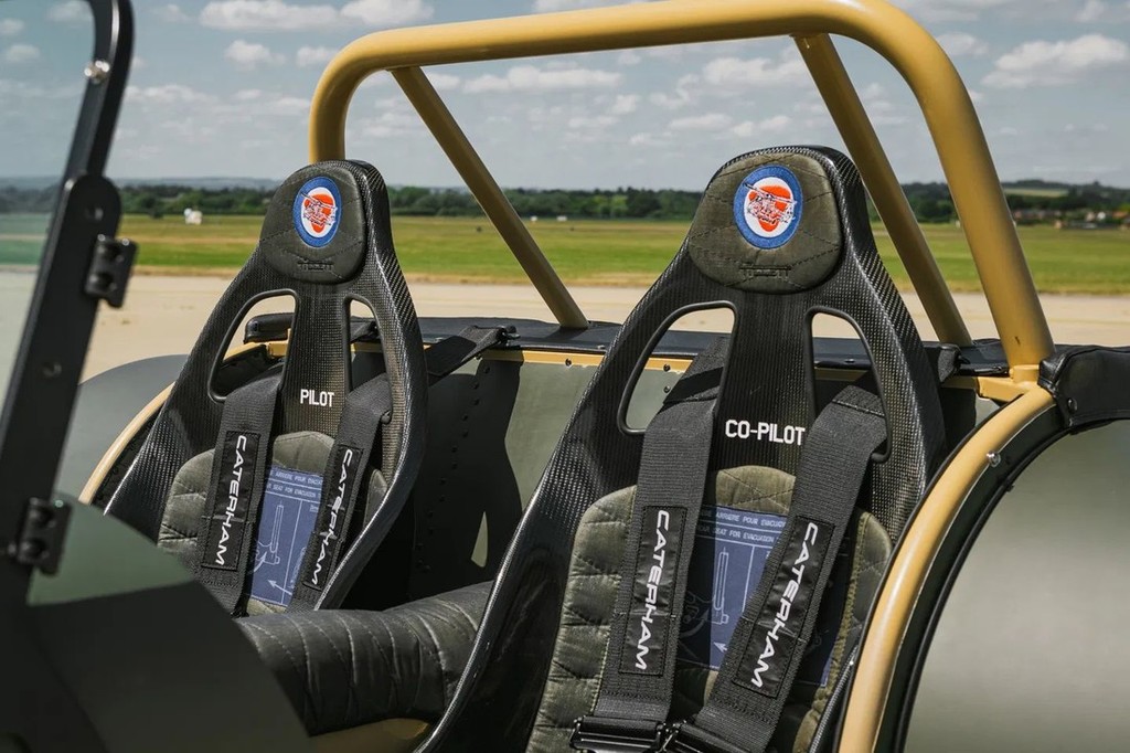 Tako smo dobili SMB ('smeđe maslinasta boja') caterhama s povsem individualno oblikovano armaturno ploščo in helikopterskimi oplatami na območju potniške kabine, za piko na i pa poskrbijo še nameščene kokarde britanskega vojaškega letalstva. Pod motornim pokrovom tega posebnega caterhama pa ni sprememb. Za samodejno premikanje tega dejansko športnega avtomobila skrbi vgrajeni 2,0-litrski 4-valjni atmosferski Zetec motor znamke Ford, ki lahko pri spodobno športnih 7300 vrtljajih v minuti mobilizira spoštljivih 180 'konj' (132 kW) ter 194 Nm motornega navora pri visokih 6100 vrtljajih v minuti. Ker takšen, izredno kompaktni caterham (dolžina: 3350 mm, širina: 1685 mm, višina: 1115mm), ni eden izmed današnjih, več kot odlično rejenih 'nešportnikov' z maso nad 1500 kg (še zadnja razumna meja za maso športnega avtomobila …) bo pospeševanje od 0-96 km/h zaključeno v 4,8 sekunde, končna hitrost tega, samo 565 kilogramov težkega vozila pa je omejena na 130 milj na uro (209 km/h).