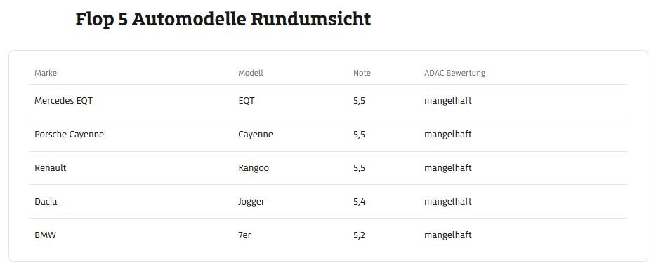 Strokovnjaki izredno vplivne ameriške organizacije za zaščito potrošnikov so pred približno petimi leti predstavili listo varnih in nevarnih avtomobilov, kjer pa avtomobili niso razvrščeni glede na Euro NCAP in podobne ocene, temveč po oceni vidljivosti iz avtomobila, sedaj so do podobnih ugotovitev prišli tudi strokovnjaki kluba ADAC.