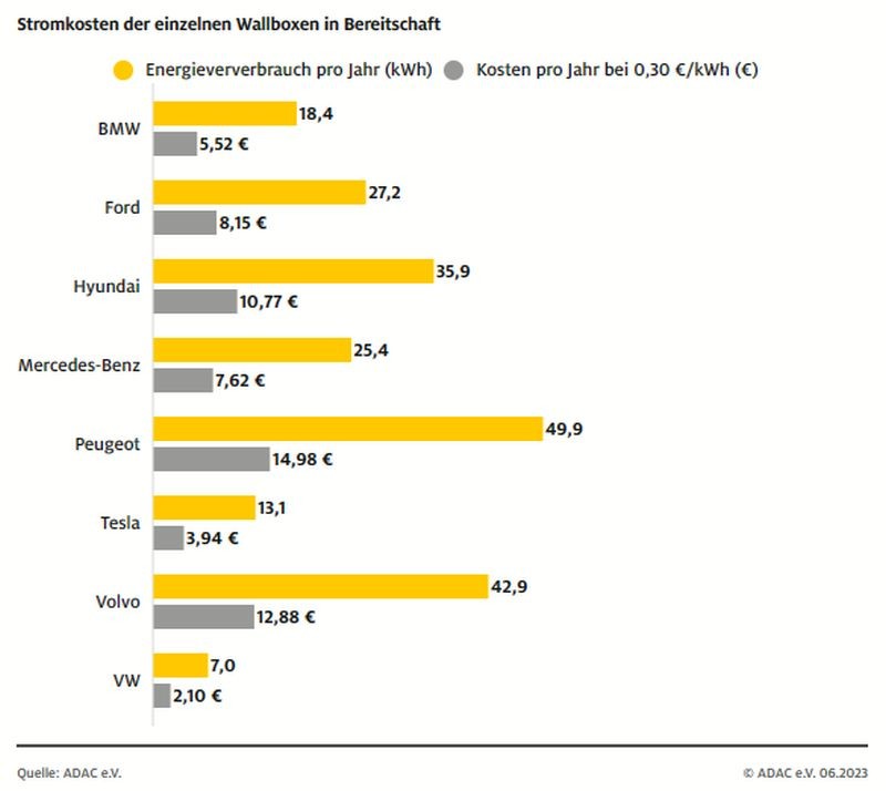 Z 'bronasto medaljo' so tokrat okitili izdelek znamke Peugeot ('Peugeot ePro Full Wallbox'). Za takšno polnilno postajo boste v Nemčiji odšteli 899 evrov. Zanimiva pa je tudi primerjava obratovalnih stroškov takšnih polnilnic. Po nemškem izračunu so pri znamki Volkswagen tisti, ki uporabniku ponujajo najbolj 'denarnici prijazno' polnilno postajo, ker naj bi v povprečju v enem letu pokurila samo 7 kilovatnih ur električne energije, najbolj 'neprijazna' v tem pogledu pa bo polnilnica znamke Peugeot, ki v enakih pogojih pokuri občutno več (49,9 kWh). Če želite razumeti te številke, potem morate poznati tudi številke, posredovane s strani primerjalnega portala Verivox, kjer pravijo, da vas bo vklopljena 'Stand-by' funkcija pri vašem računalniku, WLAN usmerjevalniku, televizorju ali pa hi-fi komponenti v enem letu olajšala za podobno količino električne energije (od 30 do 50 kWh).