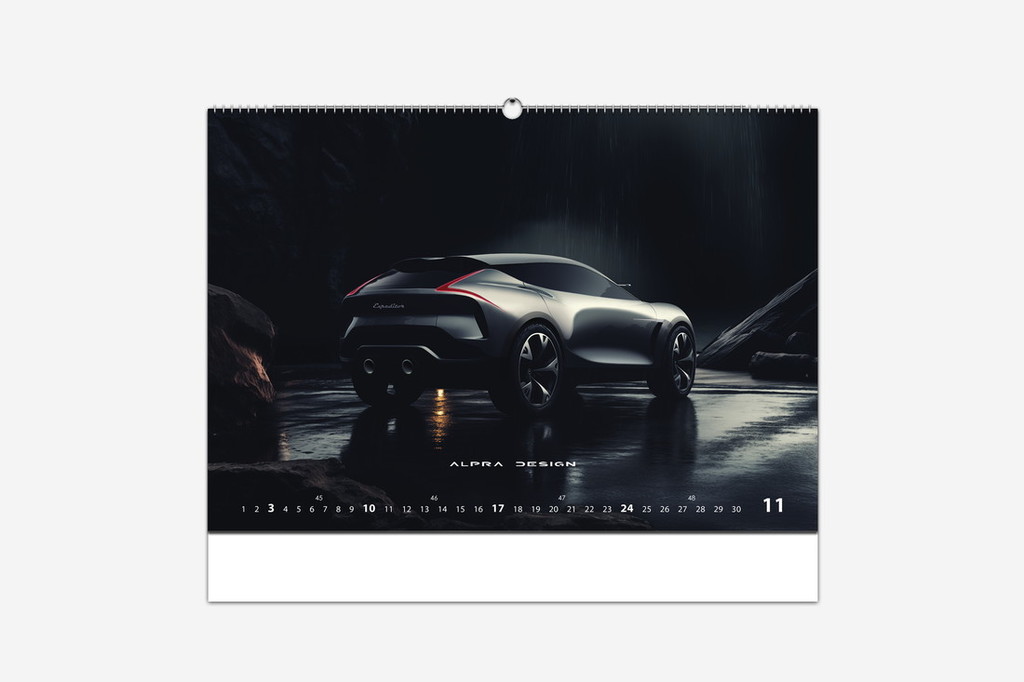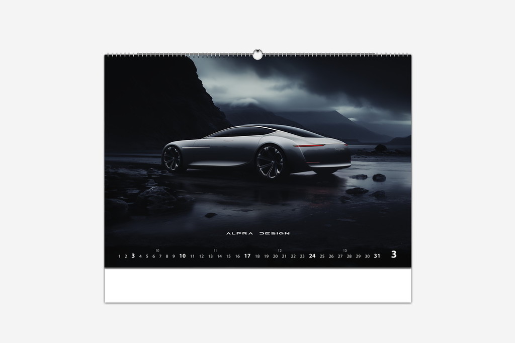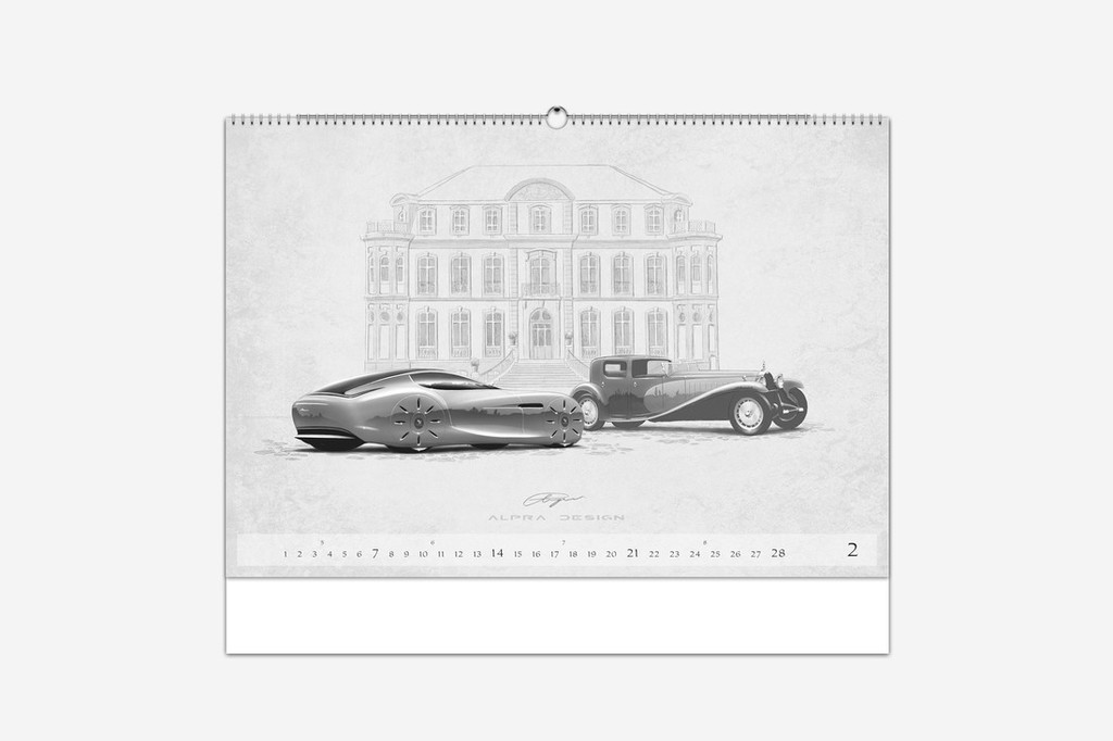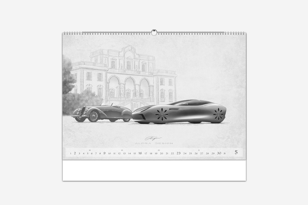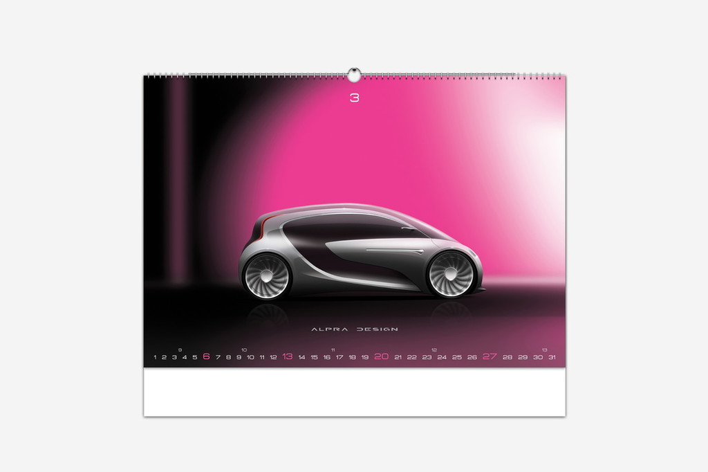 predstavljeni avtomobilski dizajni zasnovani namensko za koledar. V razvoj posameznega koledarja je vloženih več mescev dela! Z nadpovprečno kakovostjo in detajli odstopajo od množičnosti. Povrh je vsak izvod ročno podpisan in oštevilčen ter vstavljen v kartonsko škatlo, v kuverti pa je dodana še poštna kartica z motivom s koledarja. Koledarji ALPRA DESIGN so idealno darilo za tiste, ki želijo delovati nevtralno in podariti nekaj pristno slovenskega, kakovostnega, z dolgo tradicijo in