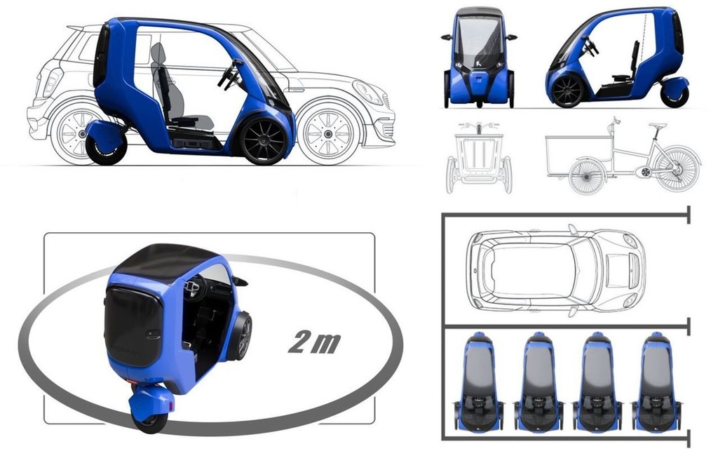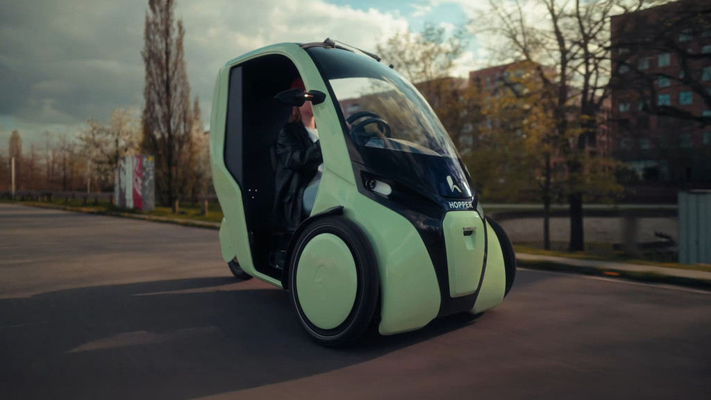 Tega se več kot očitno zavedajo tudi ustanovitelji nemškega start up podjetja Hooper Mobility, ki ponujajo prebivalcem mestnih središč njihov dejansko kompaktni 3-kolesni koncept oblikovnega križanca med avtomobilom in električnim kolesom z imenom hooper. Takšen 3-kolesnik (dolžina: 212 cm, širina: 105 cm, višina: 149 cm, neto masa: 140 kg, uporabna nosilnost: 160 kg) lahko prevaža 2 odrasli osebi ali pa voznika in dva otroka, poleg tega je potnikom na voljo tudi 125-litrski prostor za tovor (300 litrov v primeru 'cargo' različice …), ki se skriva v zadku vozila.