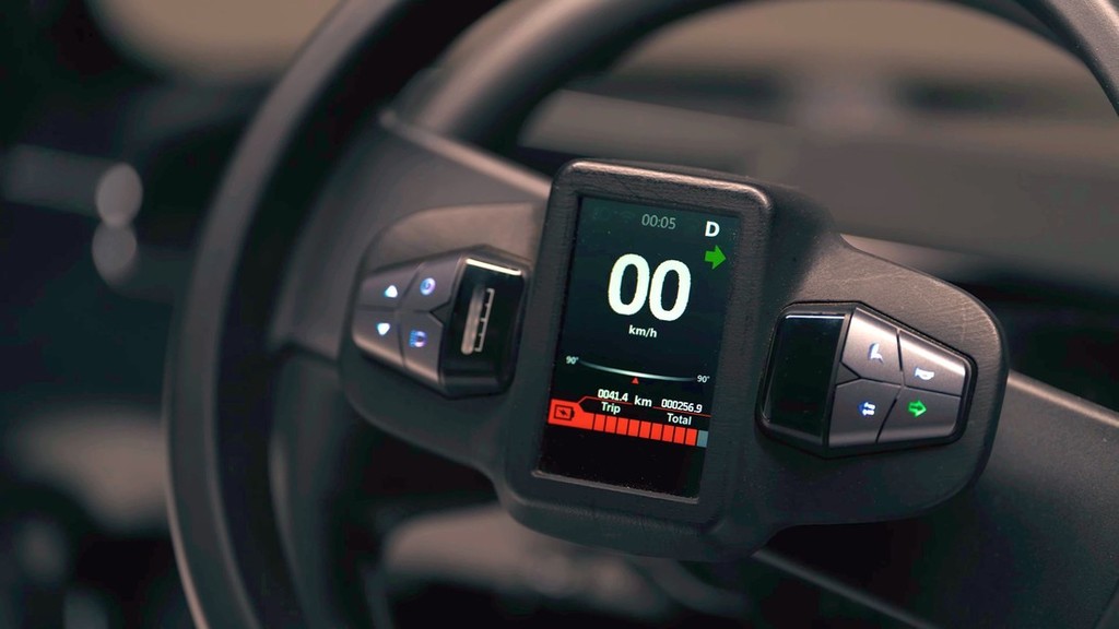 Je pa res, da s takšnim vozilom ni pametno divjati (posledica visokega težišča, ozkega koloteka in 3-kolesne zasnove), s tem se strinjajo tudi snovalci tega vozila, zato je končna hitrost tega 3-kolesnika omejena na 25 km/h. Med posebnostmi velja omeniti 'dvojni volan', z zgoraj nameščenim volanskim obročem lahko voznik krmili vozilo, spodnji volanski obroč, ki je nekoliko vertikalno pomičen, pa prevzema vlogo zavornega pedala za aktiviranje zavornih diskov na prednjem kolesnem paru, čeprav ima voznik na voljo tudi zavorni pedal, ki aktiva zavore na zadnjem pogonskem kolesu.