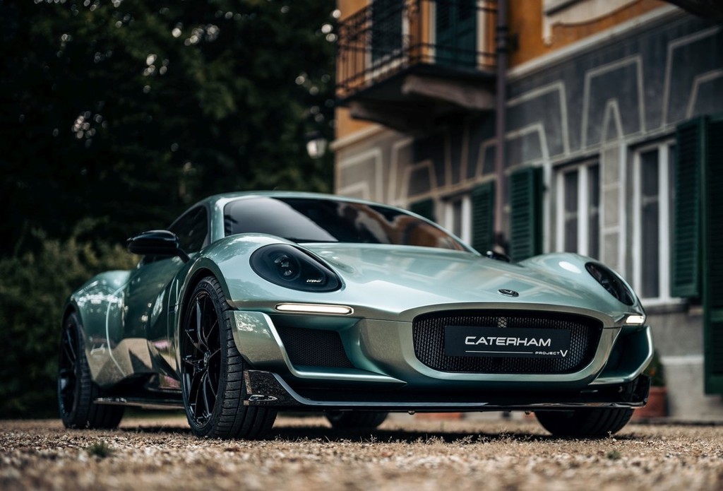 Avtomobil, ki trenutno nosi oznako 'projekt V', predstavlja sad sodelovanja z italijanskim podjetjem Italdesign, kjer bodo novi model tudi izdelovali, medtem ko je za oblikovanje novega modela znamke Caterham poskrbel Anthony Jannarelly, ki je novi hišni oblikovalec vozil te znamke v lasti japonske družbe VT Holdings. Ob razvoju in oblikovanju tega striktno električno gnanega kupeja s sedežno konfiguracijo 2+1 (klasično kupe konfiguracijo 2+2 bodo ponujali za doplačilo …) so se Britanci seveda držali hišne tradicije in ustvarili relativno kompakten (dolžina: 4255 mm, širina: 1893 mm, višina: 1226 mm, medosna razdalja: 2581 mm, pnevmatike: 235/35/R19 (spredaj), 285/30/R20 (zadaj)) športni avtomobil, ki je za današnje razmere tudi lahek (neto masa vozila: 1190 kg) in posledično zelo agilen.