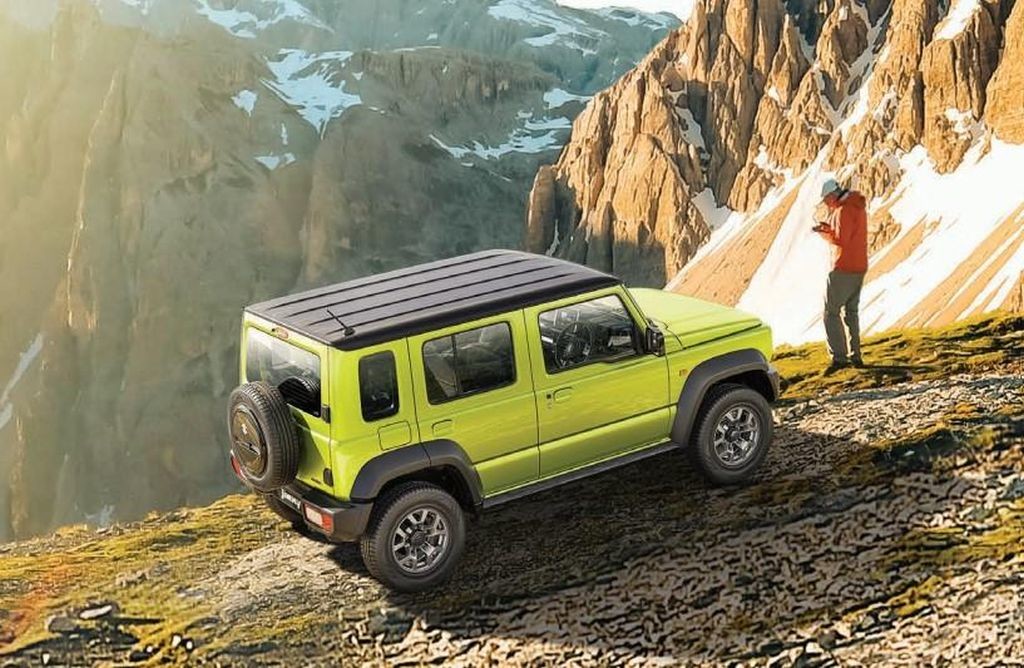 Novi 5-vratni jimny, ki je eden izmed zadnjih pravih predstavnikov poštenih terenskih avtomobilov (vozilo z vozno šasijo in nanjo poveznjeno karoserijo …), je ob rojstvu obdržal večino atributov že znane 3-vratne različice (dolžina brez rezervnega kolesa na zadku: 3480 mm) in jih spojil s povečanim odmerkom praktičnosti (dodaten par bočnih vrat, dodan par dodatnih bočnih kabinskih stekel in večja (+ 380 mm) medosna razdalja, lažji vstop in zapuščanje vozila za zadnje potnike …), vendar pri znamki Suzuki ob predstavitvi nove 5-vratne različice niso razkrili informacij glede tega, kakšne dejanske prednosti (več prostora za potnike na zadnji klopi ali povečana prostornina prtljažnika? Morda je v igri oboje …) prinaša povečana medosna razdalja, poleg tega seveda, da je avtomobil zaradi tega bolj miren pri večjih hitrostih na avtocestah, obstaja pa tudi minus (zaradi večje medosne razdalje lahko ob vožnji prej nasedete s 'trebuhom' (dno karoserije)) glede obnašanja 5-vratnega jimnyja na terenu.