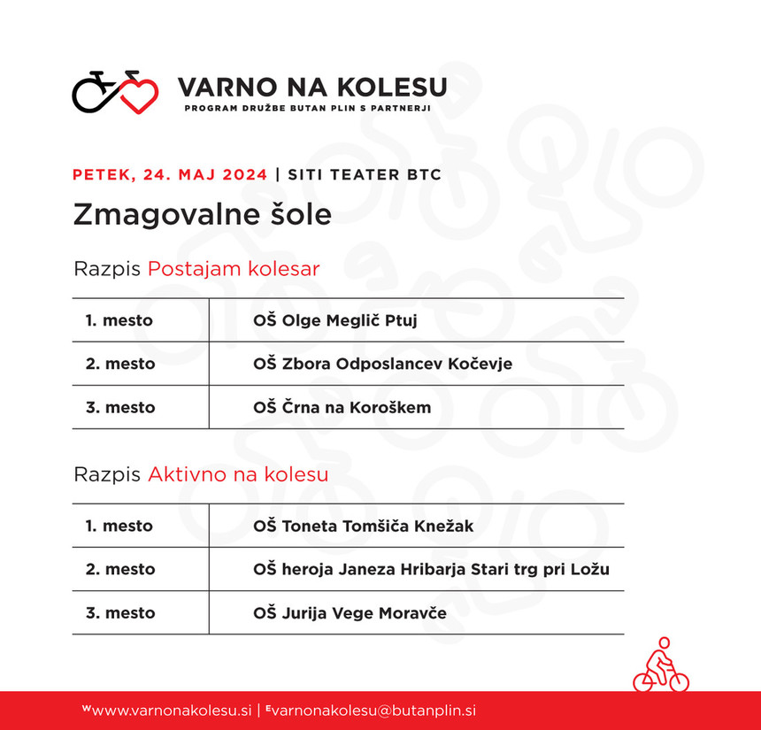 Zmagovalne šole RAZPISA Aktivno na kolesu so: