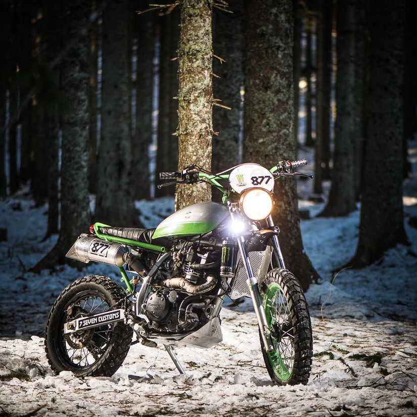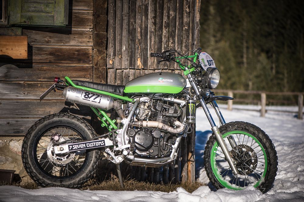 7seven customs: KLR je delovni motocikel, zanesljiv, a hkrati, če se izrazimo lepo, 'neatraktiven'. Star enduro motocikel, ki se lepo pelje po urejenih podlagah, na makadamu ali pa celo v blatu pa deluje težak in okoren. Predelanega v stilu Monster Trackerja praktično ne boste zasledili oziroma, če smo natančni predelanega KLR-a ni. Pač še ni bil narejen. Do sedaj. A ravno zaradi tega, smo se odločili za ta motocikel. Dajmo narediti nekaj kar še ni bilo