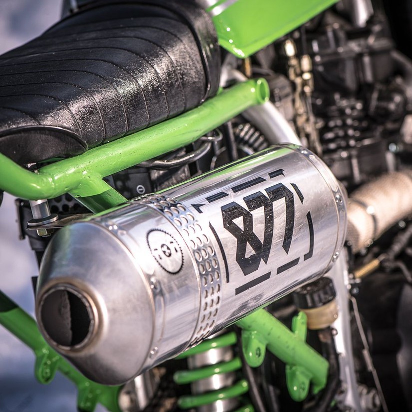 • Custom zadnji del motocikla odet v Kawasaki zeleno barvo