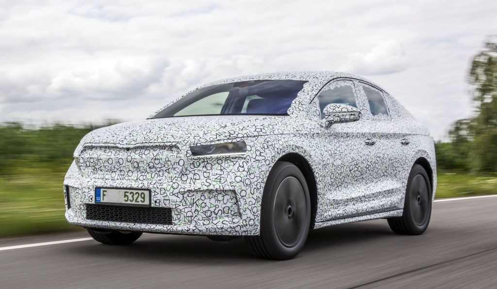 Po uspešnem prihodu Škode Enyaqa iV na trg je družba Škoda Auto paleto svojega prvega električnega SUV-ja razširila z dodatno, še bolj emocionalno oblikovano karoserijsko različico: petvratnikom Škoda Enyaq Coupé iV, za katerega je značilna elegantno padajoča linija zadka. Količnik zračnega upora znaša 0,247 in je še nižji kot pri že tako odličnem Enyaqu iV. Zato je Enyaq Coupé iV še učinkovitejši, tako da z večjo baterijo njegov največji doseg znaša več kot 535 kilometrov (po kriterijih WLTP). Na izbiro so dve velikosti baterije in tri zmogljivostne stopnje s pogonom na zadnji dve ali vsa štiri kolesa. V notranjosti so namesto klasičnih opremskih paketov uporabljeni paketi Design Selection, znani že iz Enyaqa iV. Kot je značilno za Škodo, ima tudi Enyaq Coupé iV v notranjosti obilje prostora, prostornina prtljažnika pa znaša 570 litrov.