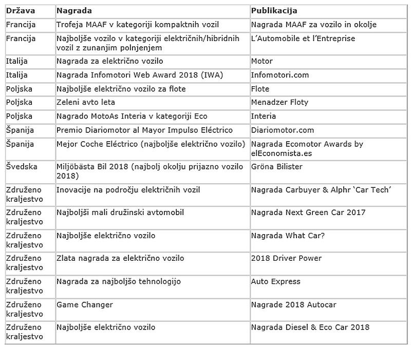 PARIZ, Francija– Eno leto po svetovnem razkritju novi Nissan LEAF nadaljuje svojo zmagoslavno pot z vrsto nagrad in številnimi prelomnicami v prodaji. V zadnjih 12 mesecih so Nissana LEAF nagradili s prestižnimi priznanji, kot so nagrada za podpiranje prodaje električnih vozil DiarioMotor.com v Španiji, nagrada Motor Electric Award v Italiji in nagrada Drive Power Gold Electric Car Award za leto 2018 v Združenem kraljestvu.