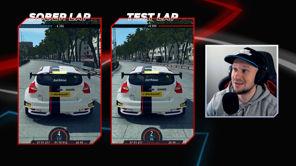 Obleke s pomočjo poslabšanega vida, uteži in zvočnih učinkov posnemajo vpliv pijanosti, mačka ali utrujenosti na voznika. Po prevoženem ‘treznem’ krogu je vsak strokovnjak s področja simulacijskih dirk uporabil eno od oblek za vožnjo istega kroga v vinjenem oziroma utrujenem stanju, pri čemer so bile posledice hitro opazne. Trenutna slepota ‘zaspane obleke’ je povzročila številna trčenja, dvojni vid ‘pijane obleke’ je povzročil nevarno nenatančno vožnjo, medtem ko so vožnjo v ‘mačkasti obleki’ spremljale številne napake, ki so se končale s spektakularno nesrečo, ta pa bi bila v resničnem življenju zelo verjetno usodna.