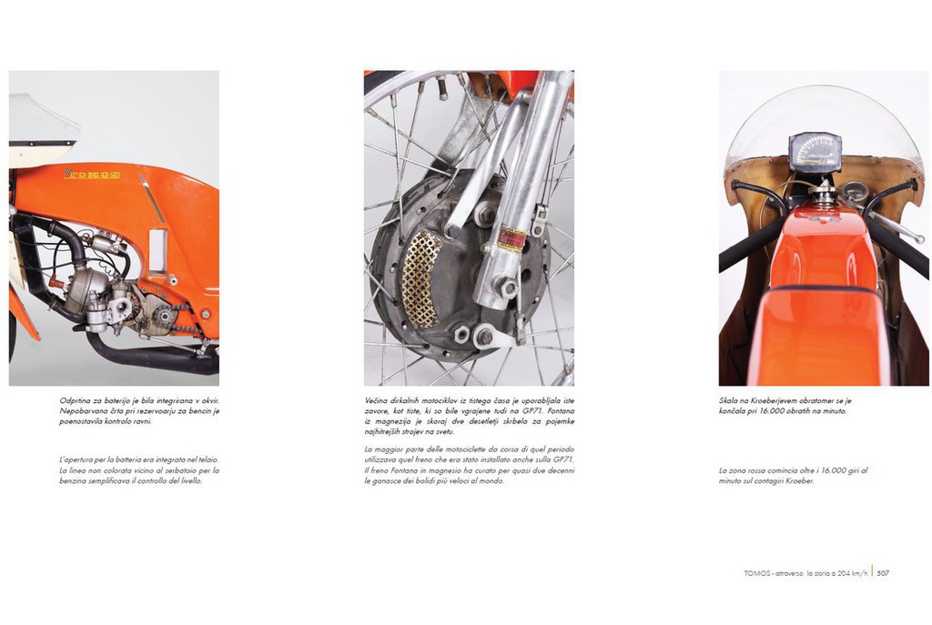 Brez njih Tomosa dejansko ne bi bilo. V knjigi avtor inženirjev ne pozabi omeniti in s tem obeležiti njihove dosežke. Dirkalni motocikli so predstavljeni do potankosti v poglavju o tehniki. Poglavje je opremljeno s profesionalnimi fotografijami posameznih modelov, ki so danes ohranjeni ali obnovljeni in so po večini v lasti samega avtorja!