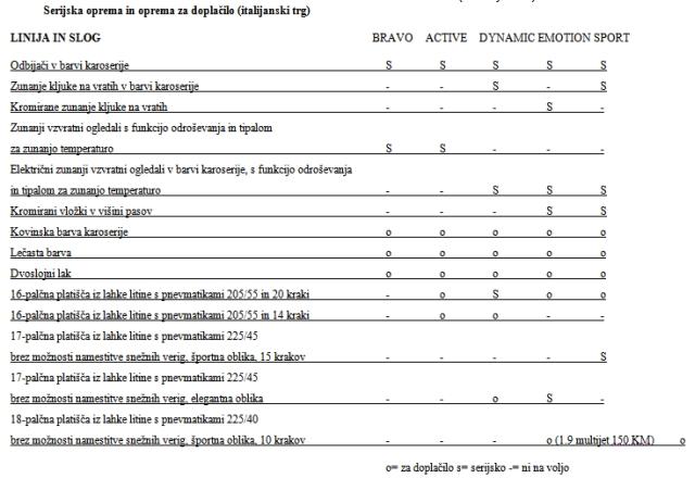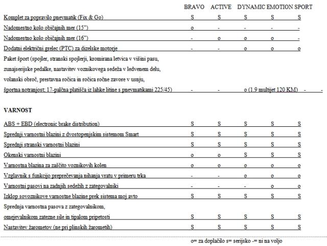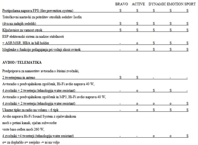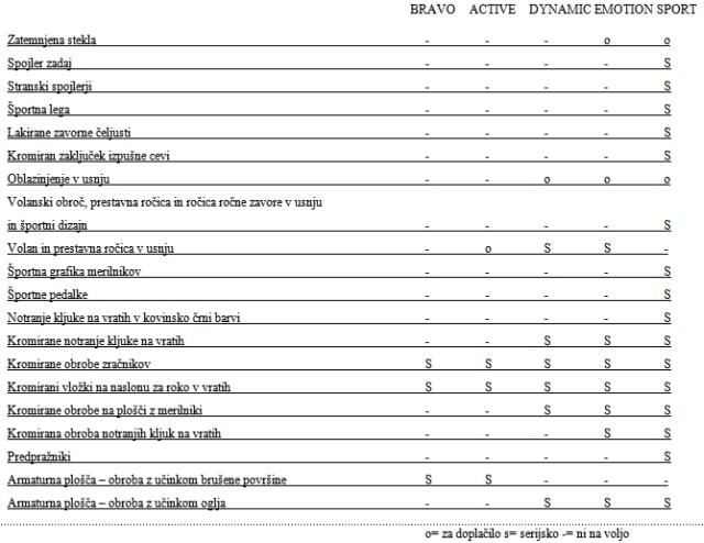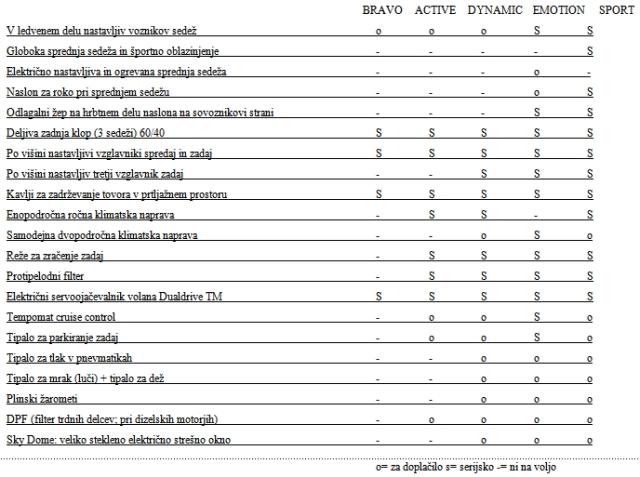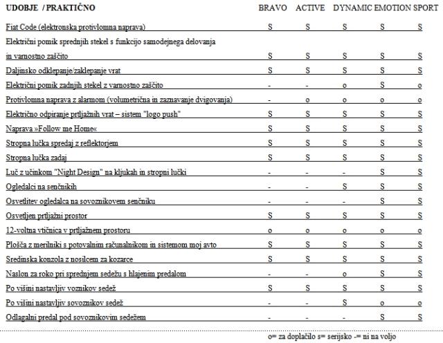 Bogastvo projekta potrjuje tudi že od vsega začetka zelo široka paleta različic fiata bravo: pet motorjev, dvanajst elegantnih barv in štiri ravni opreme (active, dynamic, emotion in sport), vse s ciljem kupcu ponuditi visoko vrednost glede na ceno.