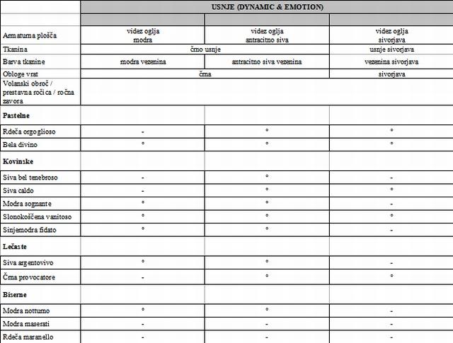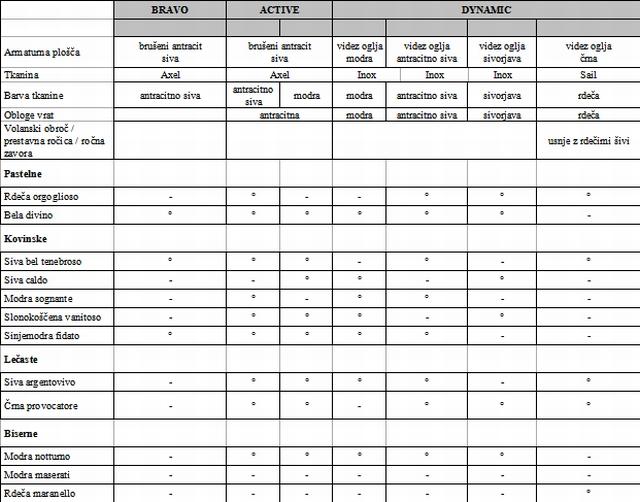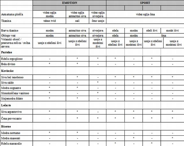 Podrobnosti pri posameznih kombinacijah so: