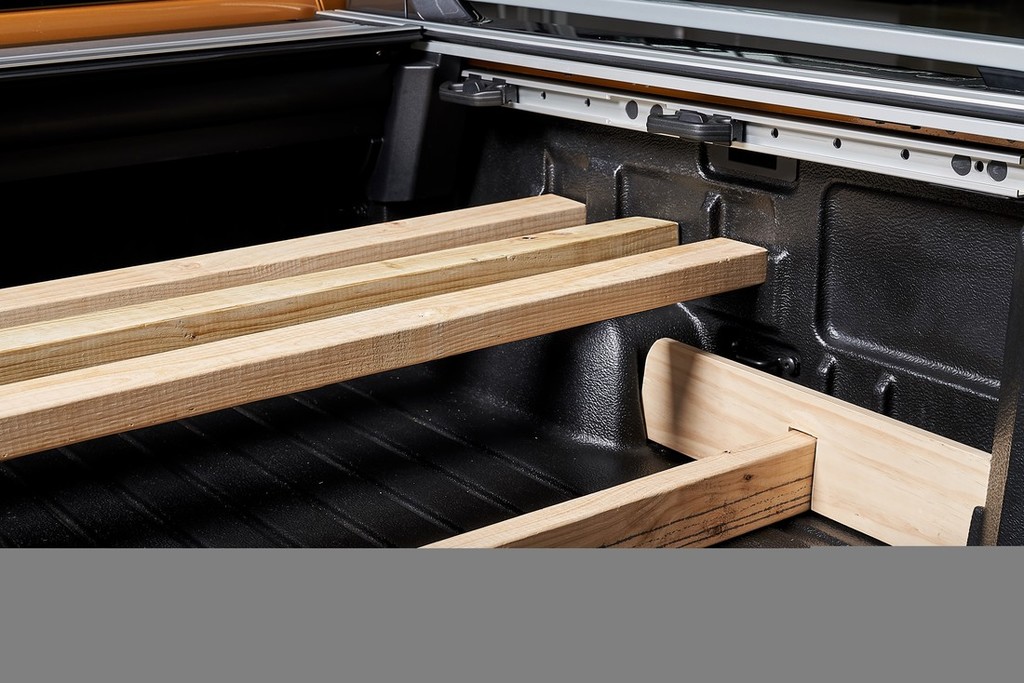 Razsvetljavo območja lahko upravljate prek zaslona na dotik informativno-razvedrilnega sistema v vozilu ali prek aplikacije FordPass™2 na pametnem telefonu. Kombinacijo žarometov, osvetlitve tal ob vozilu, luči za osvetlitev registrske tablice in osvetlitve kesona lahko nastavite tako, da osvetljuje 360-stopinjsko območje okoli vozila ali samo določene dele, da lahko ponoči varno pregledate okolico vozila. Preprosto dvižna zadnja stranica, ki jo je mogoče dvigniti in spustiti z eno roko, služi tudi kot mobilna delovna miza. Delovna površina zadnje stranice je zasnovana tako, da je lastnikom v pomoč pri profesionalnih ali ljubiteljskih opravilih. Dva žepa z objemko, ki ju v prtljažnih vratih skrivata vzmetna pokrova, sta namenjena lažjemu pritrjevanju lesa ali drugega materiala za delo, vgrajeno ravnilo z 10 mm razmikom (pri modelih, ki niso opremljeni z vgradno oblogo) pa omogoča priročno merjenje.