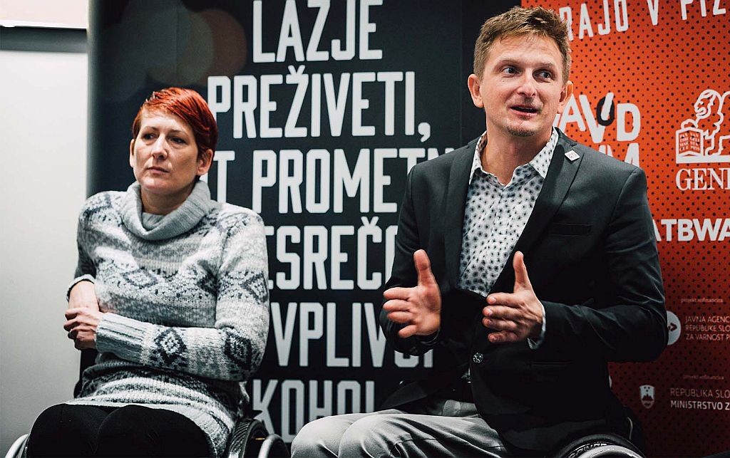 David Razboršek, direktor Zavoda Vozim in Barbara Slaček, prostovoljna herojska voznica iz Zavoda Vozim, sta otvorila tiskovno konferenco