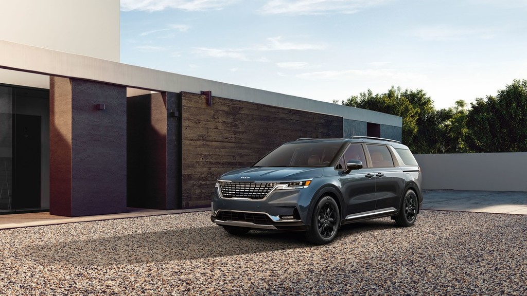 Povsem novi veliki enoprostorec Kia Carnival, ki so ga zasnovali v Kiinem kalifornijskem oblikovalskem studiu, prinaša drzen in škatlast videz, kar je odraz vizualnega jezika, ki ga najdemo v zelo uspešni liniji robustnih SUV modelov te najstarejše korejske avtomobilske znamke – sem sodijo npr. Telluride, Sorento in Seltos. Dramatične linije pokrova motorja pripomorejo k izpostavljanju agresivnega značaja vozila, medtem ko poudarjeni kolesni loki dajejo vtis volumna na Carnivalovem boku.