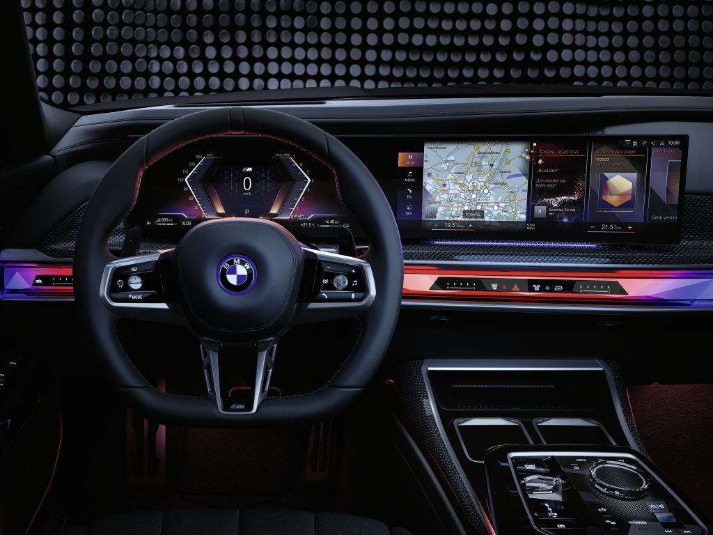 Nova generacija operacijskega sistema BMW iDrive s številnimi funkcijami bo premierno na voljo v vozilih BMW serije 7: BMW Intelligent Personal Assistant z dodatnimi funkcijami je mogoče upravljati z zadnjih sedežev; ekskluzivni programi My Modes Expressive, Relax, Theatre Mode in Digital Art Mode (predvidoma na voljo od spomladi 2023); pretakanje videov YouTube na zahtevo na nadzornem prikazovalniku. 5,5-palčni krmilniki na dotik, vgrajeni v zadnja vrata, služijo kot upravljalne enote za