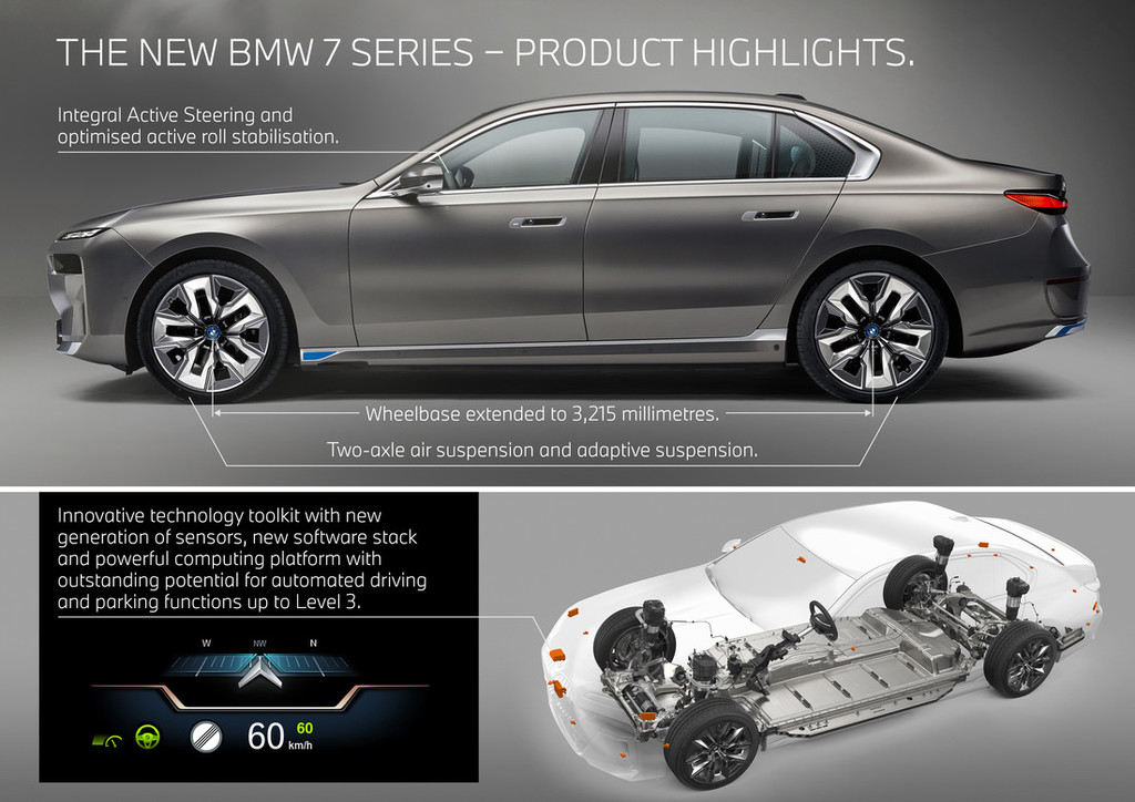 Na voljo je inovativna tehnologija z novo generacijo senzorjev, novo programsko opremo in zmogljivo računalniško platformo z izjemnim potencialom za tretjo stopnjo samodejne vožnje in parkiranja. Kot del standardne opreme za novi BMW serijo 7 je na voljo: opozorilo pred čelnim trkom, ki zazna bližajoči se promet med zavijanjem levo (v državah, kjer vozila vozijo po desni) ter kolesarje in pešce in zavijanju desno. Hkrati je na voljo parkirni asistent z asistentom za vzvratno vožnjo. Med
