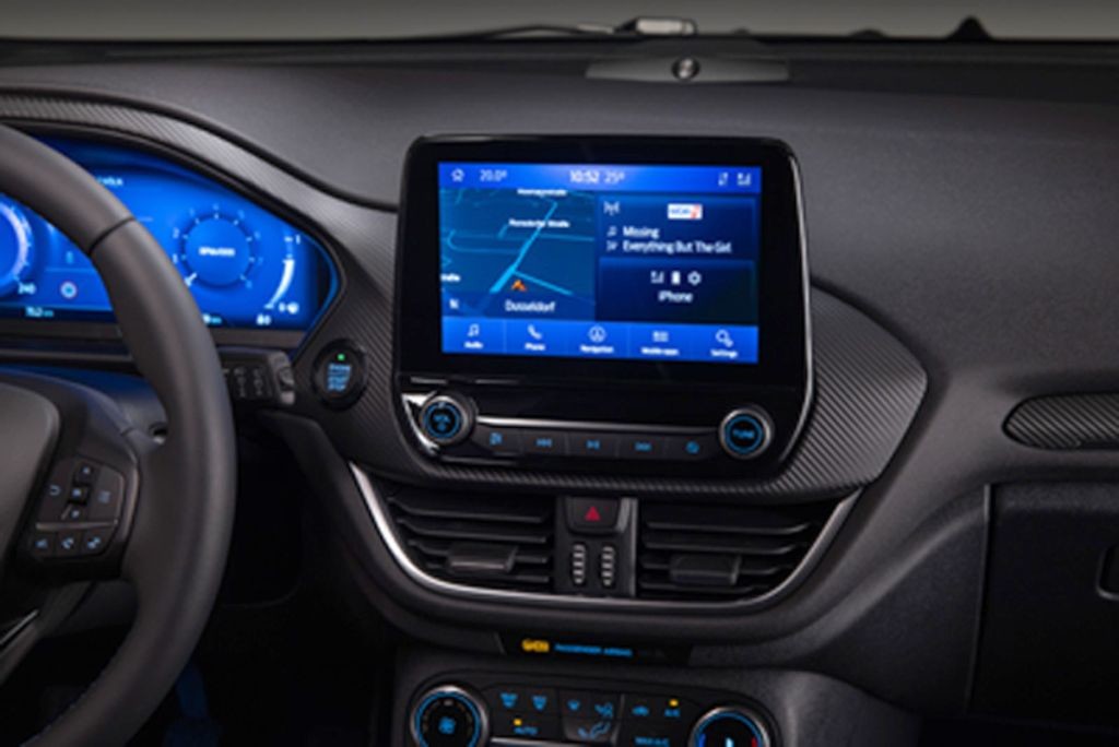 Povezljivost nove Fieste zagotavlja tudi posodobitve informacij o prometu ‘v živo’ za razpoložljivi navigacijski sistem in omogoča informacije o nevarnostih v bližini vozila,1 ki lahko voznike obvestijo o nevarni situaciji na cesti pred njim, tudi če dogodek zaradi ovinka ali drugih vozil ni viden. Razpoložljivi sistem za komunikacije in razvedrilo SYNC 36 vozniku omogoča, da s preprostimi glasovnimi ukazi upravlja zvok, navigacijo in povezane pametne telefone. Sistem zagotavlja združljivost z vmesnikoma Apple CarPlay in Android Auto™, podpira pa ga 8-palčni (20,3 cm) središčni zaslon na dotik, ki omogoča upravljanje s kretnjami, kot sta ‘razteg’ in ‘pomik’, na njem pa je lahko prikazana 180-stopinjska slika vzvratne kamere.