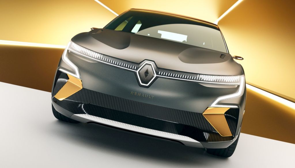 hladilni sistem, tehnični elementi in svetila poudarjeni na celotni karoseriji, da s tem označujejo začetek novega rodu električnih vozil Renault.