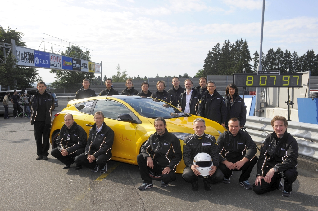 Renault Sport je rekord za avtomobile s pogonom spredaj na Nordschleife prvič postavil 23. junija 2008. Takrat so z modelom Mégane R26.R dosegli čas 8 m 17 s in dokazali, da lahko s povsem serijskim avtomobilom s prednjim pogonom prekosijo številne modele prestižnih znamk in predelovalcev. Tri leta zatem je bil na vrsti novi Mégane R.S. Trophy, posebna omejena serija modela Mégane R.S., s katerim so 17. junija 2011 prejšnji rekord izboljšali za 9 sekund.