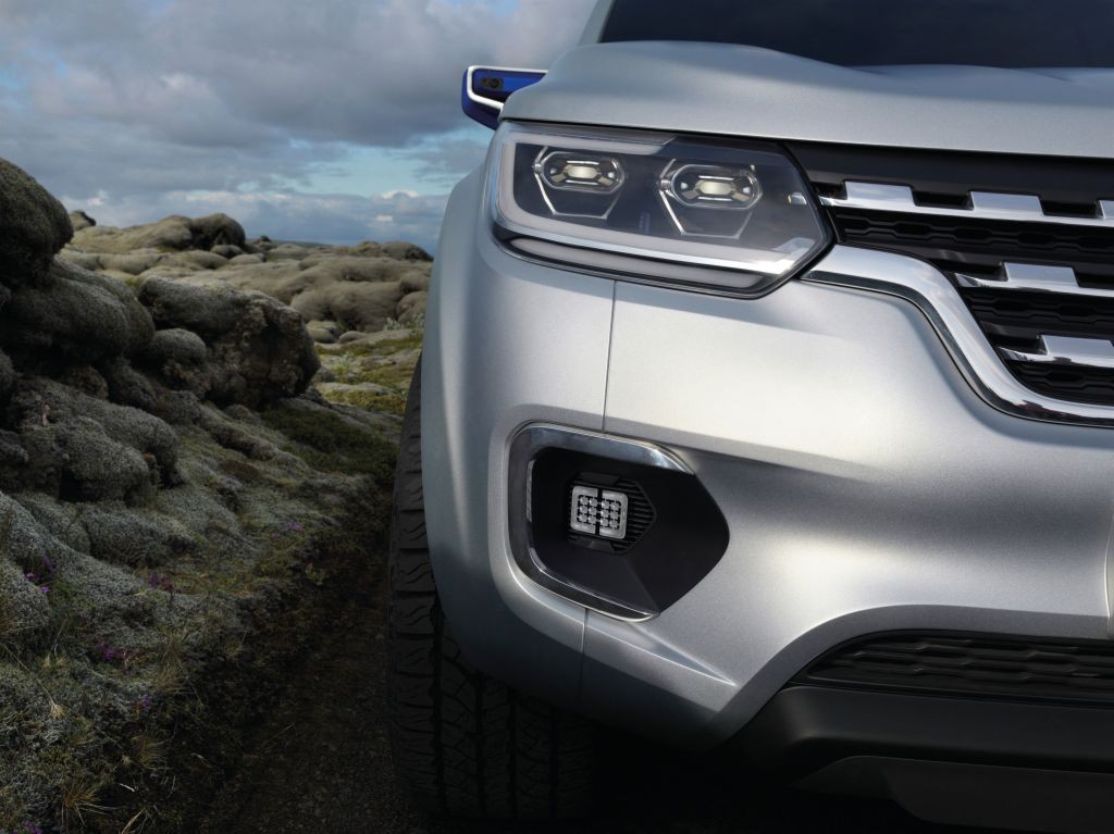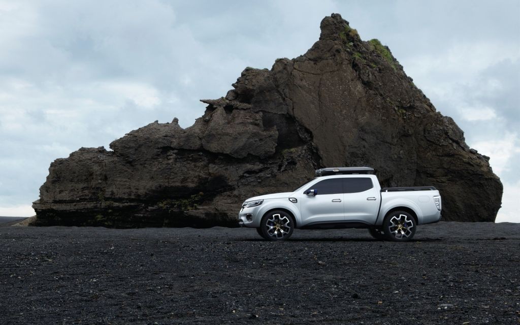 Čvrsta in statusna oblika študije Alaskan je popolnoma v skladu z estetskimi pričakovanji kupcev pick-upov, obenem pa zvesta načelom oblikovne istovetnosti znamke Renault.