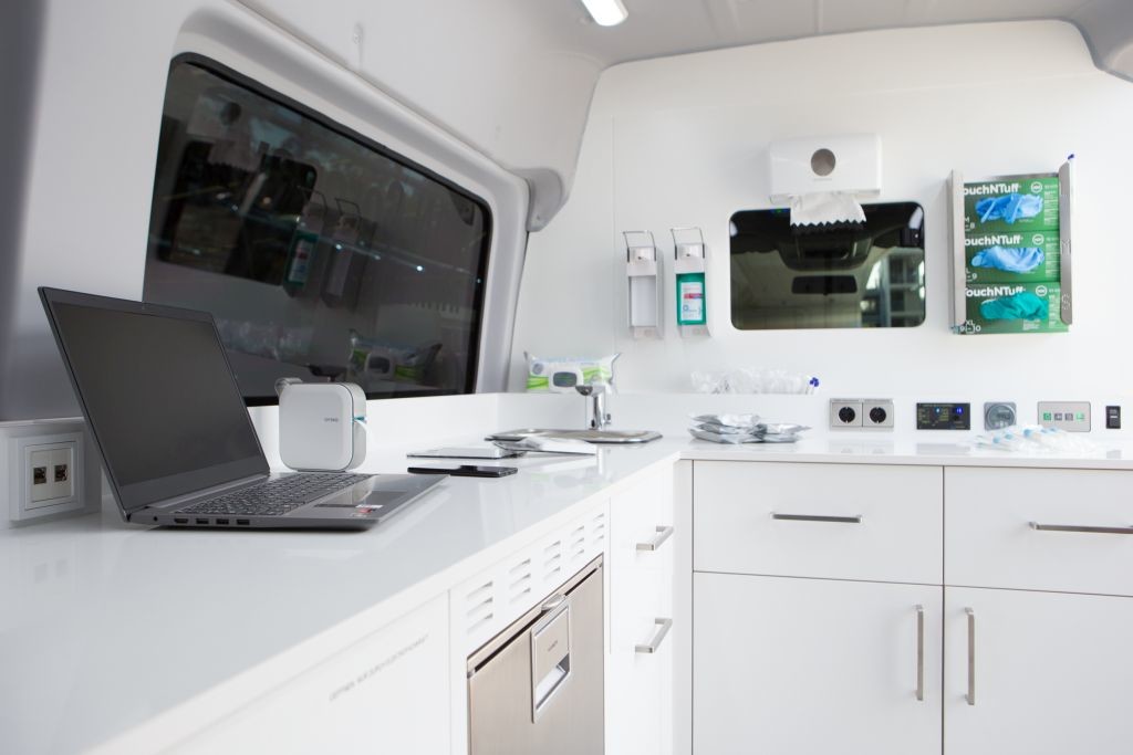 K standardni opremi spadajo tudi higienske površine. Pregled in oceno tveganja vozila so opravili strokovnjaki za epidemiološko zaščito pri organizaciji Medizinischen Katastrophen-Hilfswerk Deutschland e.V. (MHW)