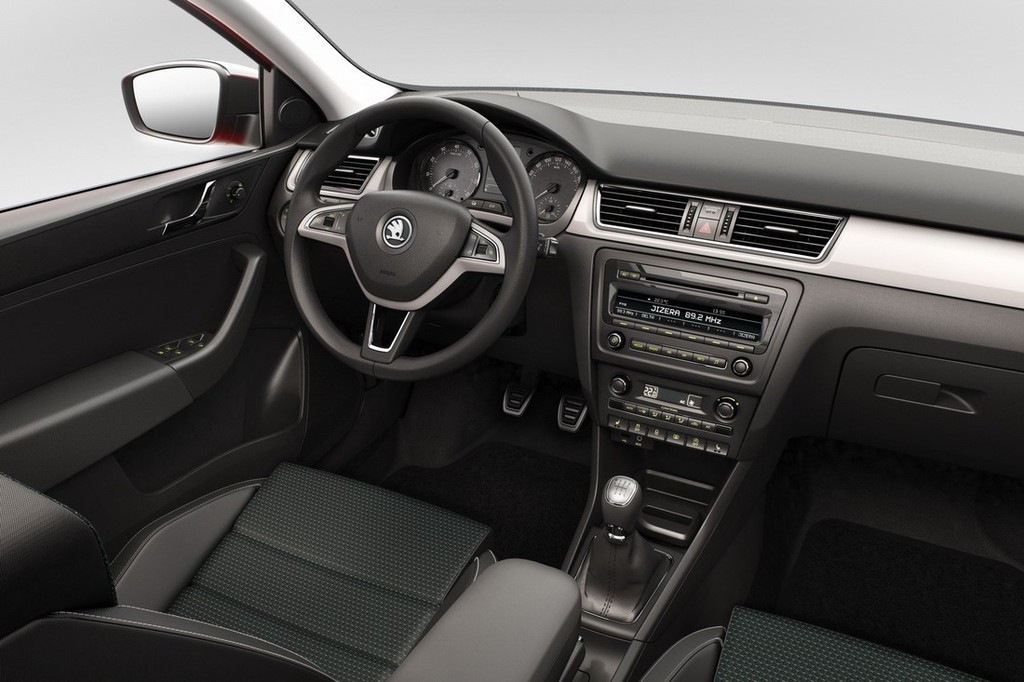 Notranjost novega Rapida Spaceback prepriča s privlačno ponudbo športnih 3-krakih volanov, elegantnih dekorativnih letev in novih sedežnih prevlek. Kot je značilno za Škodo, notranjost novega modela ponuja obilo prostora: čeprav je zunanjost za 18 cm krajša od limuzinske različice, je prostor v potniškem prostoru odmerjen enako velikodušno kot v "velikem bratu". Za zadnji del potniške kabine velja, da se Rapid Spaceback v svojem segmentu ponaša z največjim prostorom za noge (64 mm) in