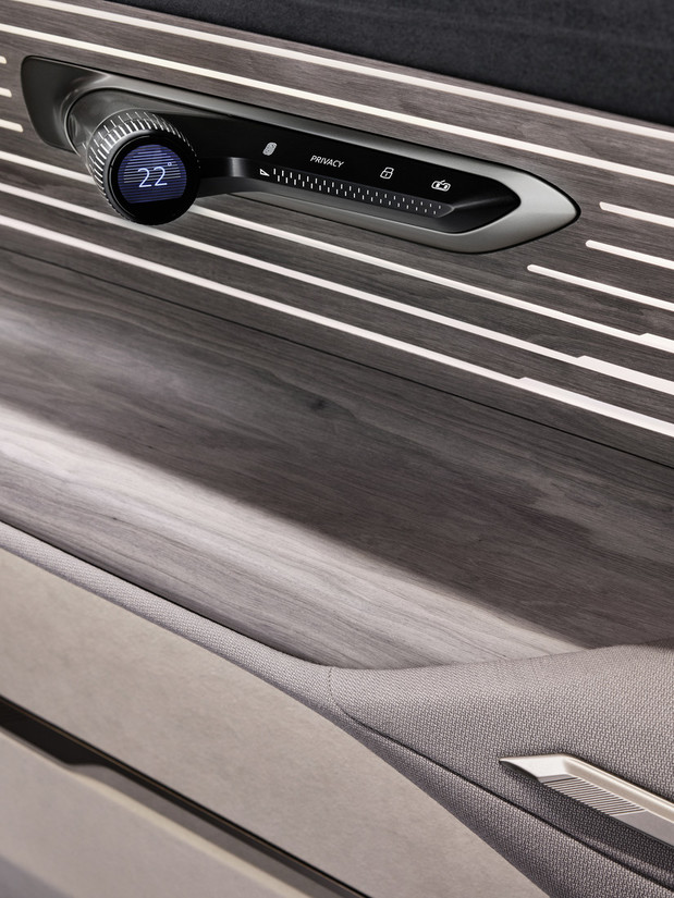 Upravljalna polja so vgrajena tudi v naslone za roke v vratih. Tako vozilo potnikom vedno nudi nevidne površine na dotik z optičnim prikazom njihovega položaja. Hkrati so v vratnih naslonih za roke na levi in desni strani očala za navidezno resničnost, ki jih je mogoče uporabljati v povezavi z možnostmi infotainmenta – na primer za sistem Holoride.