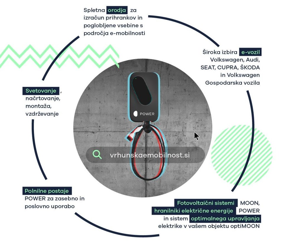 Nova spletna stran je odraz celovite ponudbe Porsche Slovenija, kakršne nima nobeno drugo podjetje v Sloveniji. Po eni strani je tu bogata paleta električnih in elektrificiranih vozil avtomobilskih znamk Volkswagen, Audi, SEAT, CUPRA, ŠKODA in Volkswagen Gospodarska vozila skupaj z ugodnim financiranjem in servisnimi storitvami, po drugi pa celota izdelkov in storitev znamke MOON. Ta obsega tako raznoliko ponudbo polnilnic za domačo in poslovno rabo kot razvejeno mrežo javnih polnilnic MOON charge, pa tudi sončne elektrarne, hranilnike električne energije in sistem za optimalno upravljanje energije optiMOON.