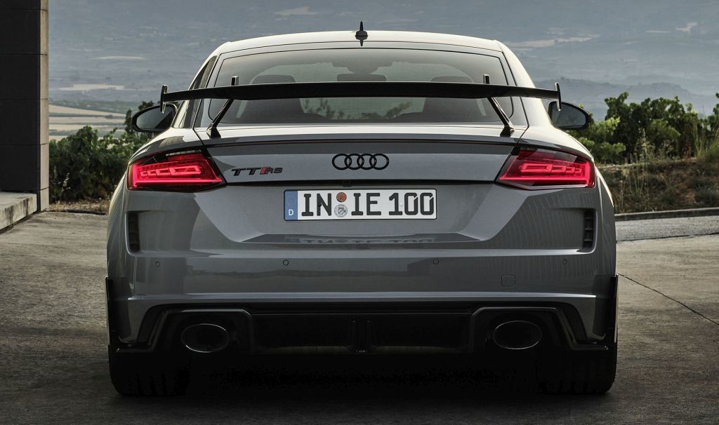 Audi TT RS Coupé iconic edition* svojo dinamično moč dodatno črpa iz aerodinamične garniture. Ta je bila razvita v vetrovniku in je nastala po navdihu iz športnega avtomobilizma. Sestavljajo jo stranska krilca na spodnjem delu sprednjega odbijača, sprednji razdelilni element in zaslonke v sprednjih stranskih odprtinah za zajemanje zraka. Na zadku fiksni zadnji usmernik zraka iz karbona s svojimi stranskimi krilci poskrbi za športen videz, kot del aerodinamičnega koncepta pa ravno tako