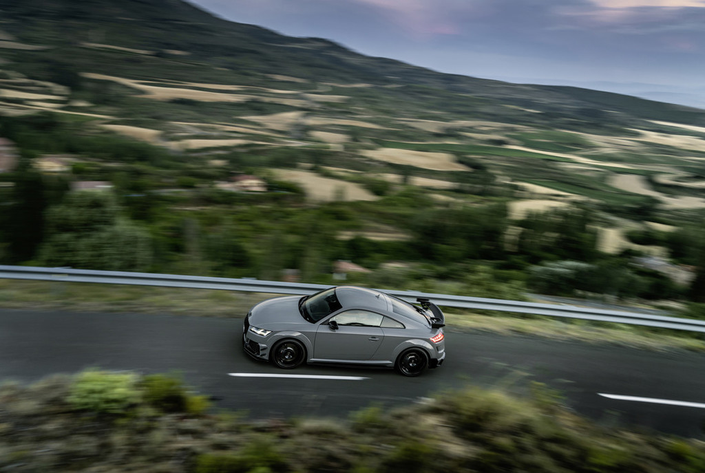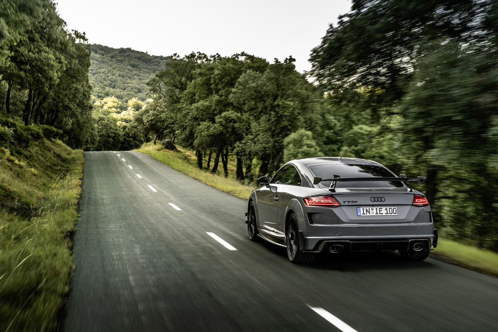 Svojo največjo hitrost TT RS Coupé iconic edition (poraba goriva v l/100 km**, kombinirana: – (NEVC); 9,1 (WLTP); emisija CO2 v g/km**, kombinirana: – (NEVC); 207 (WLTP)) doseže pri 280 km/h. Kompaktni športnik od 0 do 100 km/h pospeši v le 3,7 sekunde. Motor s svojim značilnim zaporedjem vžigov 1-2-4-5-3 in s tem povezanim prodornim zvokom poskrbi za izjemno čustveno doživetje vožnje. Navedeno zaporedje vžigov pomeni, da se vžig izmenično izvede na sosednjih valjih in na valjih daleč vsaksebi. Tak način delovanja ustvarja prav poseben ritem in značaj. Z lihim številom valjev nastajajo harmonične frekvence, ki spremljajo osnovni ton. Tudi krmilnik motorja prispeva k nezamenljivemu zvoku. Pod višjo obremenitvijo odpre lopute v izpušnem vodu in tako nastane še bolj poln zven. Poleg običajne nizke mase (1.475 kilogramov pri TT RS Coupé) za odlično vodljivost in stabilnost poskrbi RS-športno podvozje plus s prilagodljivim uravnavanjem blaženja Audi magnetic ride. Njegovo krmiljenje prav tako poteka preko sistema za uravnavanje vozne dinamike Audi drive select.