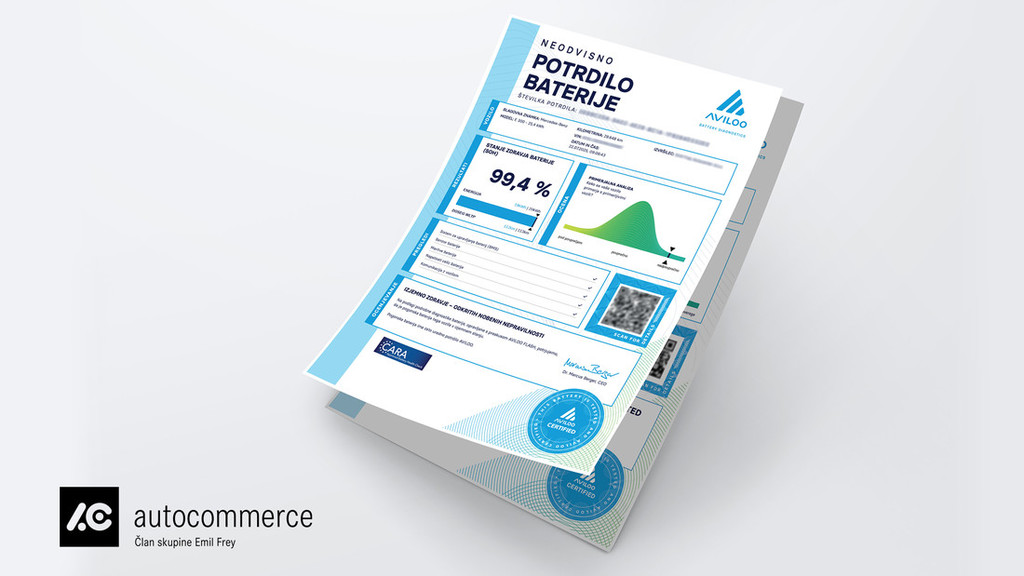 Certifikat vsebuje natančno vrednost SOH, primerjalno analizo z vozili podobnega tipa, vizualni prikaz morebitnih napak na ravni posameznih celic ter prikaz dejanskega dosega vozila v primerjavi z WLTP dosegom in tipičnim dosegom podobnih vozil iz AVILOO baze podatkov. AVILOO FLASH test predstavlja industrijski standard v svojem segmentu in dviguje diagnostiko baterij na novo tehnološko raven. S tem Autocommerce utrjuje svojo vlogo tehnološkega in strokovnega vodje na področju elektrifikacije vozil ter prispeva k trajnostni rasti elektromobilnosti v Sloveniji.
