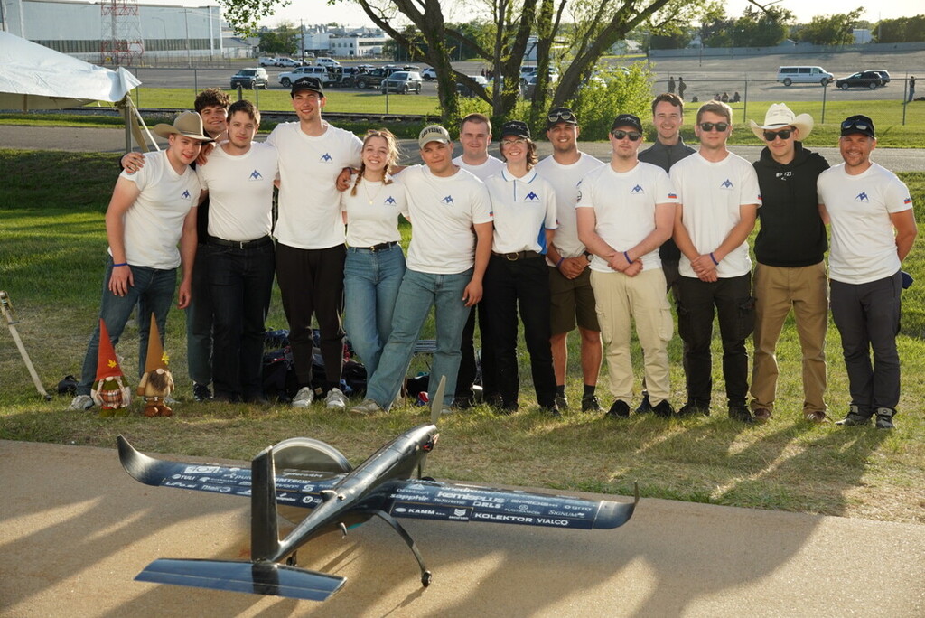 Razvoj je v celoti potekal znotraj ekipe – od idejne zasnove in CAD‑modeliranja do izdelave, testiranj in optimizacije. Poseben izziv so predstavljali mehanski sistemi ter zasnova zastave, ki je morala zagotavljati stabilno delovanje tudi v zahtevnih vremenskih razmerah. Ekipa si je z odličnim tehničnim poročilom zagotovila visoko izhodišče in drugo mesto na štartni listi. Tekmovanje so odprli z uspešno izvedbo statične naloge, katere čas so v zaključku tekmovanja izboljšali na izjemnih 6,6 sekunde. Letalne misije so potekale v zahtevnih razmerah – močan veter, nevihte in celo nevarnost tornadov so večkrat prekinili tekmovanje. Kljub temu je ekipa vse naloge izvedla zanesljivo: od testnega leta brez tovora do zahtevne misije s prevozom tovora in potnikov ter zaključne, najbolj spektakularne naloge z vleko zastave. Z dosledno izvedbo in stabilnimi poleti so prevzeli vodstvo, ki ga v napetem zaključku ni uspela preseči nobena druga ekipa.