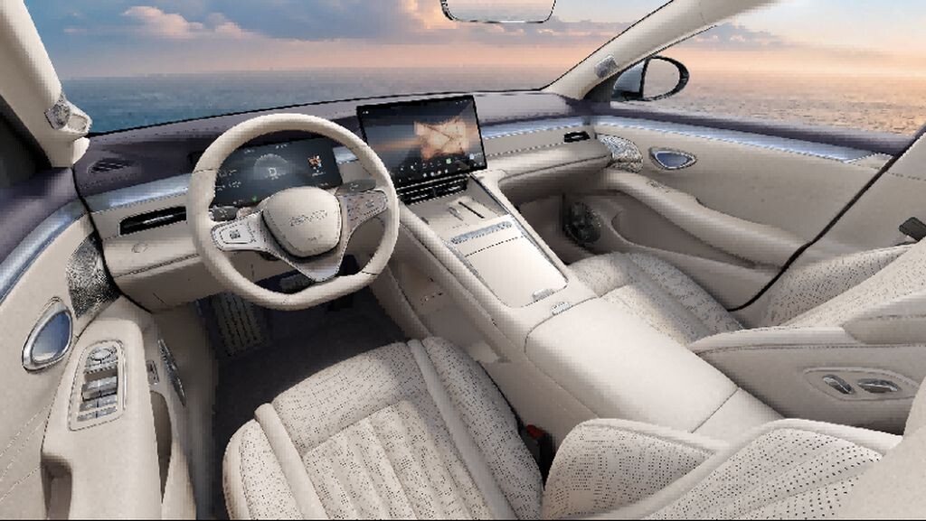V notranjosti najdemo kombinacijo športno opreme z mehkejšim občutkom domačnosti. Nov dvoroki dizajn volana ima gumbe z vbočenim profilom, kar izboljšuje otipljivost in uporabnost; po novem je mogoče prestavljati, ne da bi umaknili roke z volana. Kabina je po zaslugi ogromne panoramske steklene strehe preplavljena z naravno svetlobo. V celotnem vozilu je skupno 39 odlagalnih površin, vključno s 750-litrskim prtljažnikom in 180-litrskim sprednjim prtljažnikom, ki ga je mogoče odpreti s preprostim dotikom, ko imate polne roke nakupovalnih vrečk. Seznam opreme vključuje avdio sistem s 16 zvočniki, poseben sovoznikov sedež z dodatno funkcijo nagiba za sprostitev na daljših potovanjih, hladilnik, ki ga napaja klimatska naprava in lahko predmete greje ali hladi, 50-vatno brezžično polnjenje telefona, 60-vatno polnjenje USB Type-C in ambientalno osvetlitev z 256 barvami.