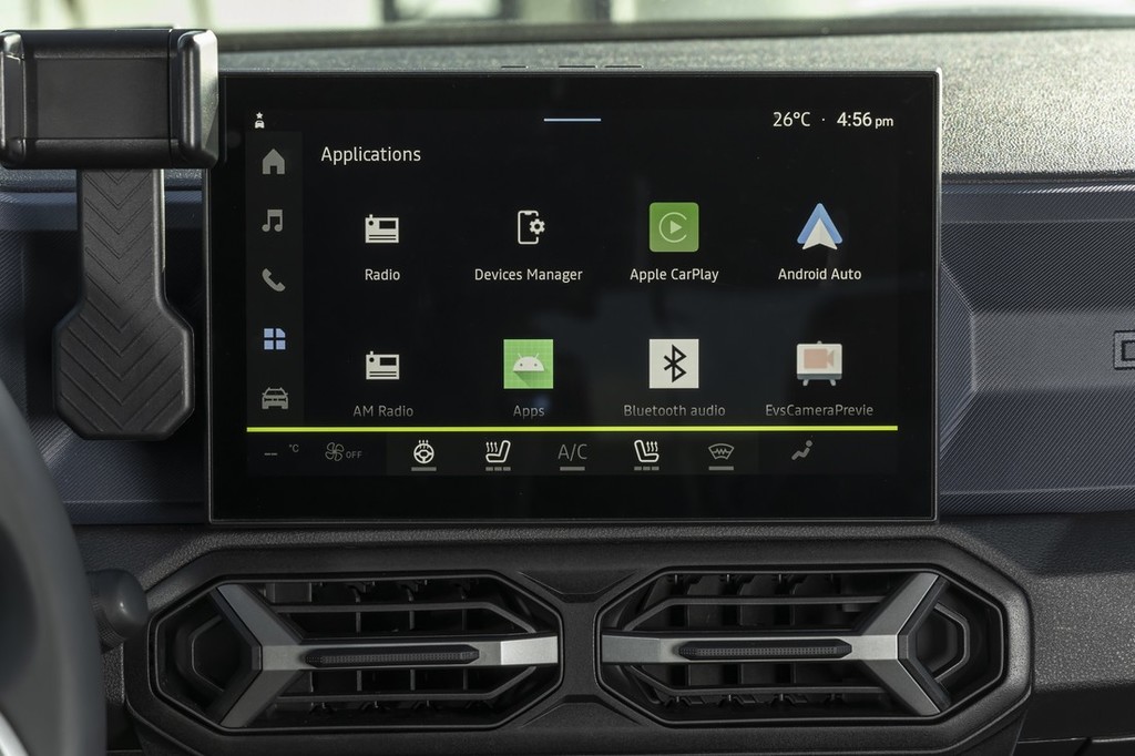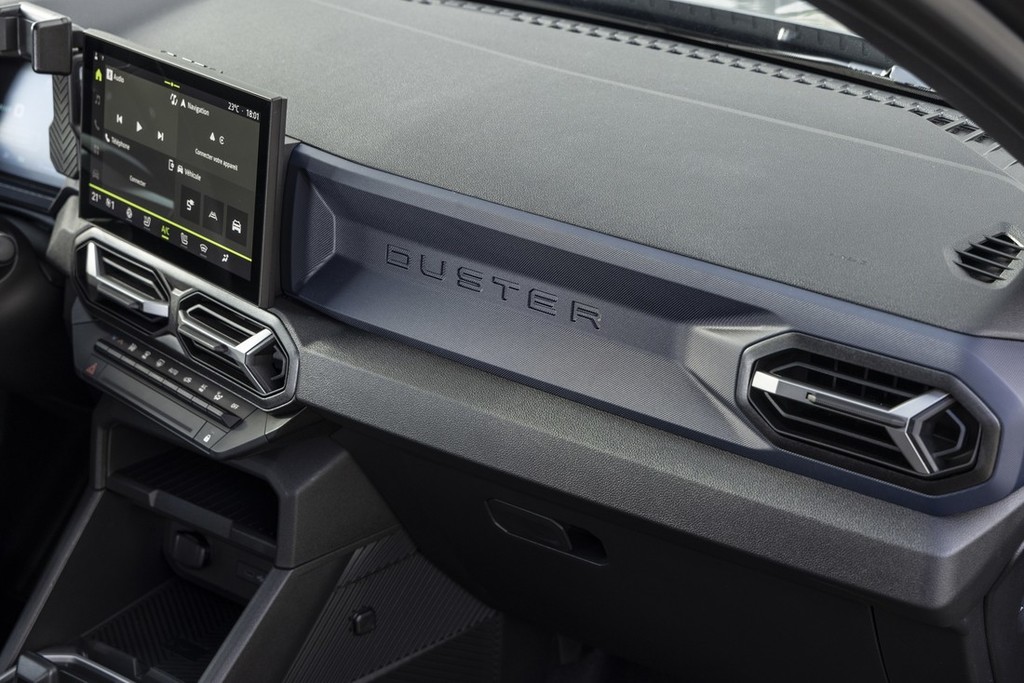 Digitalna instrumentna plošča: Novi Duster je prvi model z barvno digitalno instrumentno ploščo z diagonalo 18 cm (7''), ki vozniku omogoča prilagajanje prikazanih podatkov na bolj praktičen način. Ta digitalna instrumentna plošča je del serijske opreme od različice Expression navzgor. Držalo za pametni telefon v vseh različicah. Različice, ki so opremljene z multimedijskim sistemom Media Display ali Media Nav Live, imajo YouClip držalo za telefon in tudi dva USB-C vhoda spredaj in dva zadaj za napajanje do štirih prenosnih naprav. Ti štirje USB vhodi so tudi osvetljeni. Brezžični polnilnik pametnih telefonov je nameščen na osrednji konzoli in je pri roki tako vozniku kot tudi sovozniku. Serijsko je vgrajen v različico Journey novega vozila Duster, za doplačilo pa je na voljo tudi v paketu opreme Extreme.