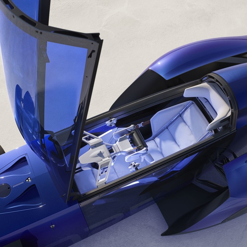 Navdih za njegove poteze izhaja iz vojaških lovcev in vozil za doseganje hitrostnih rekordov iz prejšnjega stoletja ter ponazarja stremljenje po zmogljivostih in brezčasno eleganco. Vsaka površina je bila skrbno obdelana, da ujame svetlobo in poudari silhueto, ki deluje, kot bi se razblinjala v zrak. Modra stekla in barvna skladnost še okrepijo ta vtis lahkotnosti in zračnosti, celotna oblika pa je zasnovana tako, da izraža lahkost in fluidnost. - Sandeep Bhambra, direktor oblikovanja za
