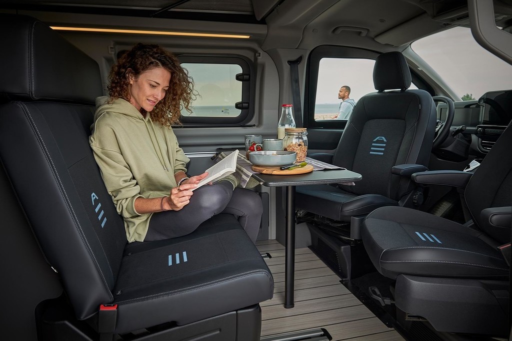 Nova izvedba Transita Custom Nugget z daljšo medosno razdaljo je na voljo v različicah Titanium in Active ter s celotno paleto pogonskih sklopov. Prostornejši model, razvit za dodatno udobje na daljših potovanjih, nadgrajuje priljubljeno večobmočno edinstveno razporeditev notranjosti, po kateri Nugget izstopa v svojem segmentu. Zagotavlja večji kuhinjski prostor z večjim delovnim pultom za pripravo hrane ter izboljšano shrambo za posodo in pripomočke. Na drugi strani bivalnega prostora