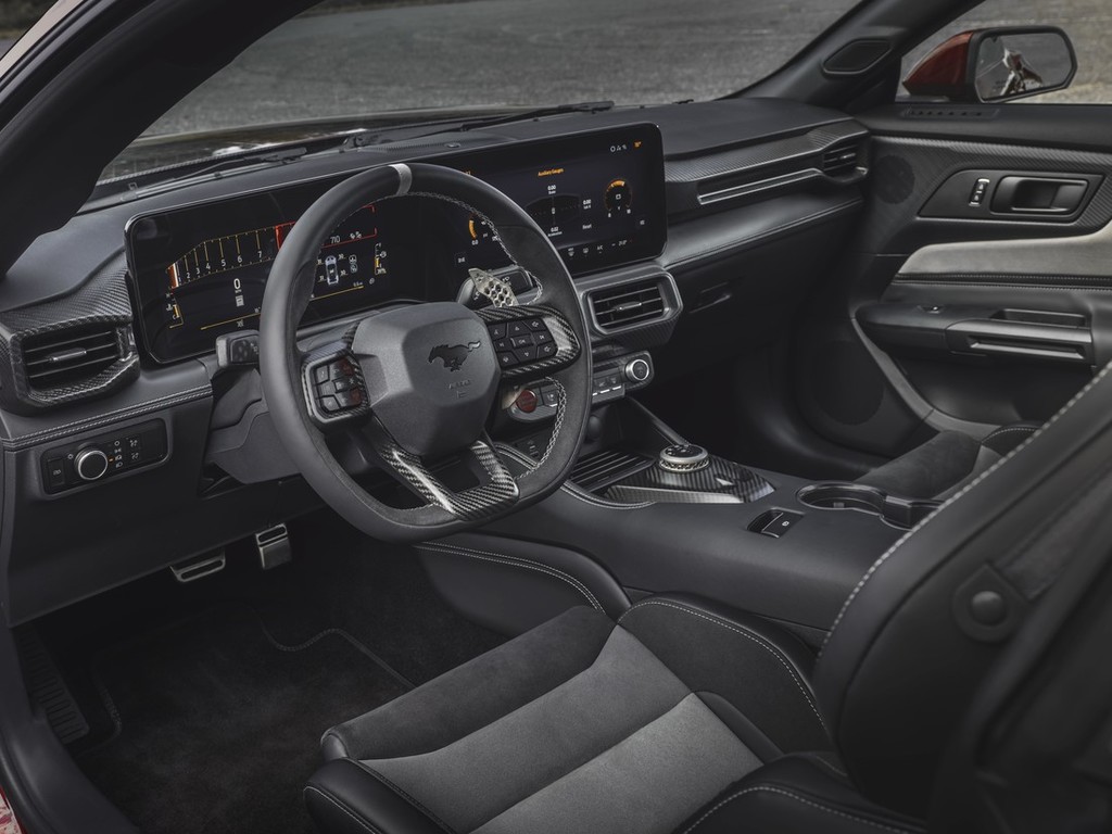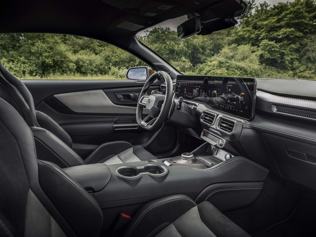 Voznikova samozavest je bistvenega pomena za zmogljivost avtomobila, Mustang GTD pa poskrbi, da je voznik osredotočen in pozoren v vsakem ovinku, šikani in na ravnini. Serijski sedeži Recaro so kos tej nalogi, saj delujejo v navezi z novim volanom Mustanga GTD. V Le Mansu je prvič na ogled tudi notranjost modela GTD. Spodaj raven volan ima odebeljen in z usnjem odlično oblazinjen obroč, ki ga krasijo vrhunski vstavki iz tkanine Dinamica in ogljikovih vlaken. Ekskluzivno za Mustanga GTD so na volanu tudi gumbi za nastavitev čvrstosti vzmetenja in načina izpušnega sistema, da lahko voznik gleda na cesto tudi med nastavljanjem lastnosti svojega Mustanga GTD v zavojih in prilagajanjem zvoka pri pospeševanju.