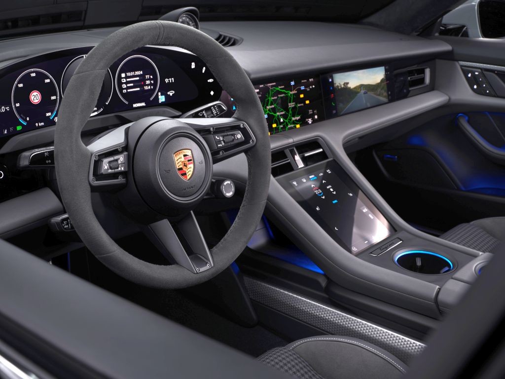 Kombinirani instrument, osrednji zaslon in opcijski sovoznikov zaslon imajo optimiziran uporabniški vmesnik z dodatnimi funkcijami. Stikalo Mode na volanu je zdaj serijsko. Pri modelih Taycan, ki so opremljeni s paketom Sport Chrono in baterijo Performance Plus, je zdaj na tipki Mode poseben gumb za funkcijo Push-to-Pass. Z novo upravljalno ročico za volanom levo je mogoče asistenčne sistem upravljati še bolj intuitivno. Tehnologija Apple CarPlay je zdaj še globlje integrirana v prikaze