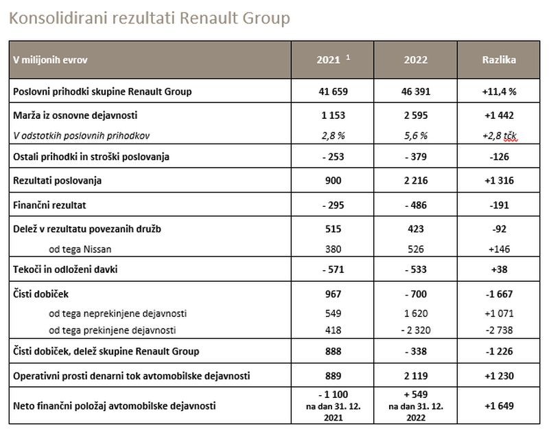 [1] Predstavljeni rezutati se nanašajo na nadaljevanje dejavnosti (brez Avtovaza in Renault Rusije, za katere je bila 16. maja 2022 objavljena odprodaja)