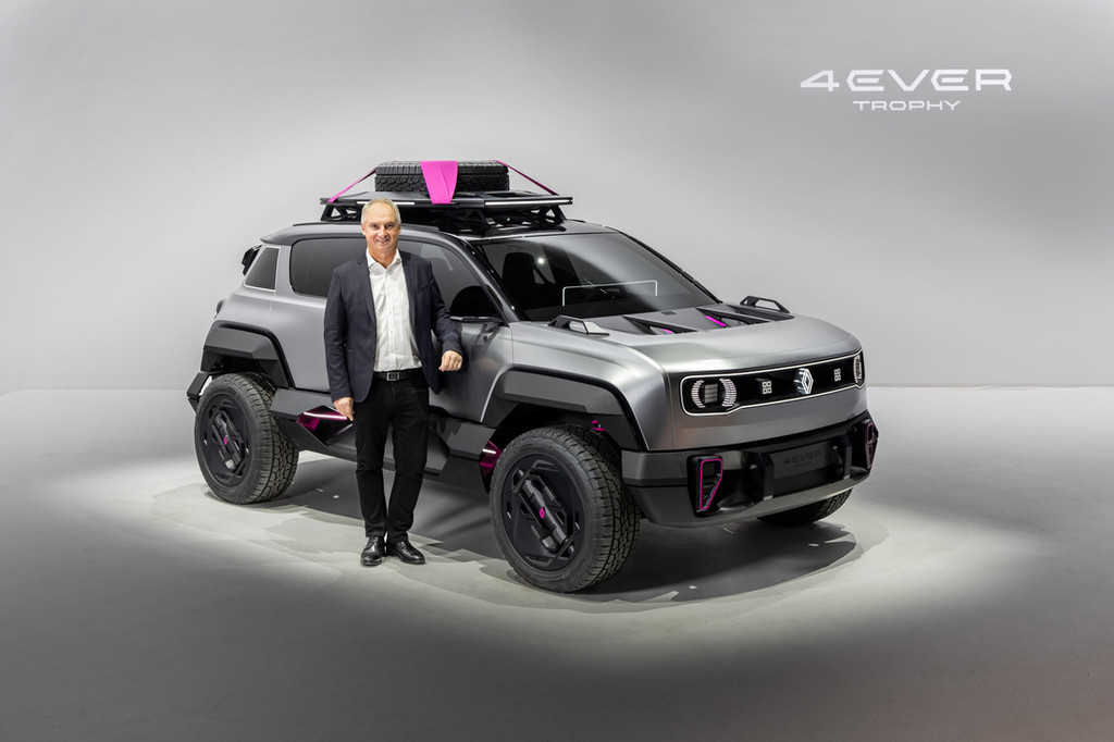 Trideset let po zaključku proizvodnje modela Renault 4 na letošnji avtomobilski razstavi v Parizu Renault razkriva moderno in električno gnano interpretacijo tega ikoničnega avtomobila: 4EVER Trophy. Ta razstavni prototip je pustolovec lahke kategorije, ki slavi 25. obletnico solidarnostne prireditve »4L Trophy«. Hkrati nakazuje prihodnji serijski električno gnani SUV segmenta B, ki bo naprodaj leta 2025, izdelovali ga bodo v Franciji, v tovarni Maubeuge, ki je del industrijskega vozlišča