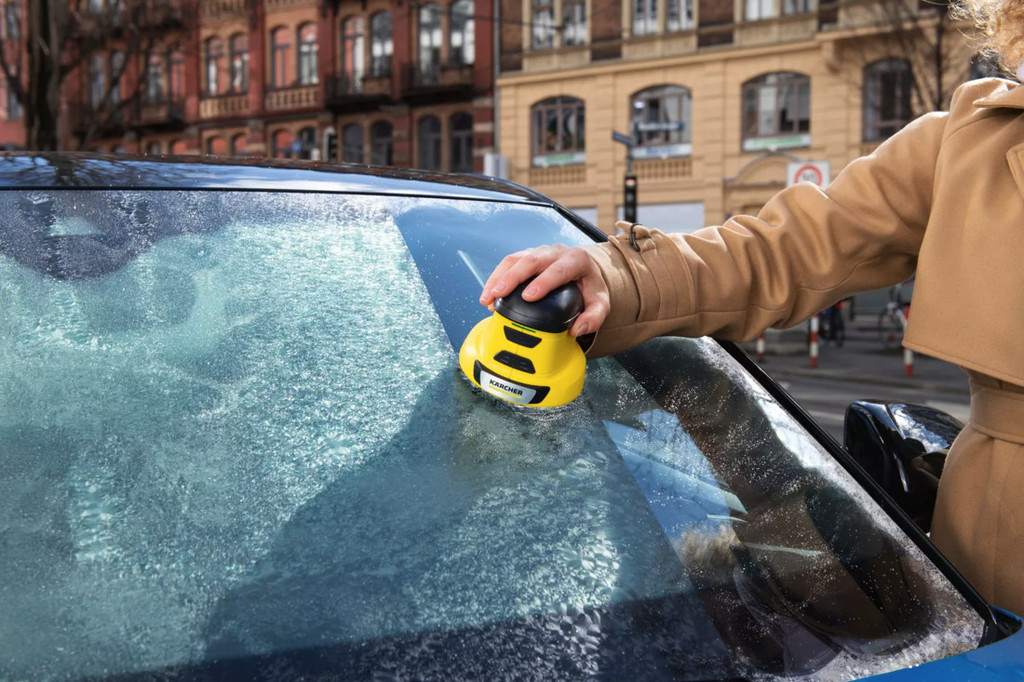 Strgalo za led Karcher je majhna in kompaktna naprava, ki jo lahko držite zgolj z eno roko. To vam omogoča enostavno rokovanje – vse, kar morate storiti je, da napravo položite na vetrobransko steklo, jo rahlo pritisnete navzdol in pomikate po vetrobranskem steklu.